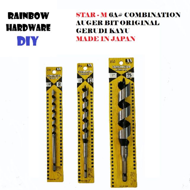 Star-M 6A# Combination Auger Bit Original (Made in Japan) Gerudi Kayu -5/16"~1"