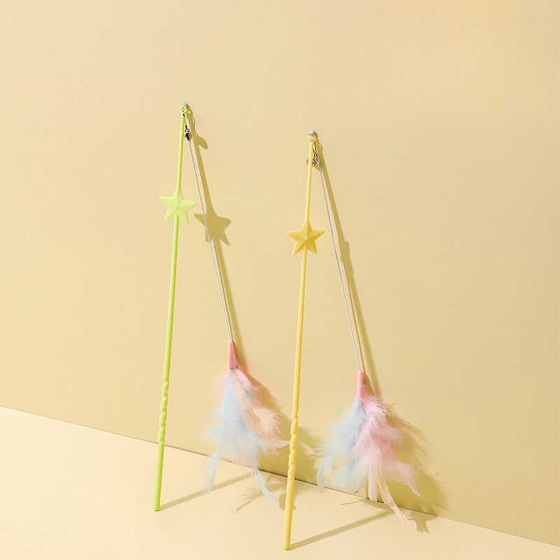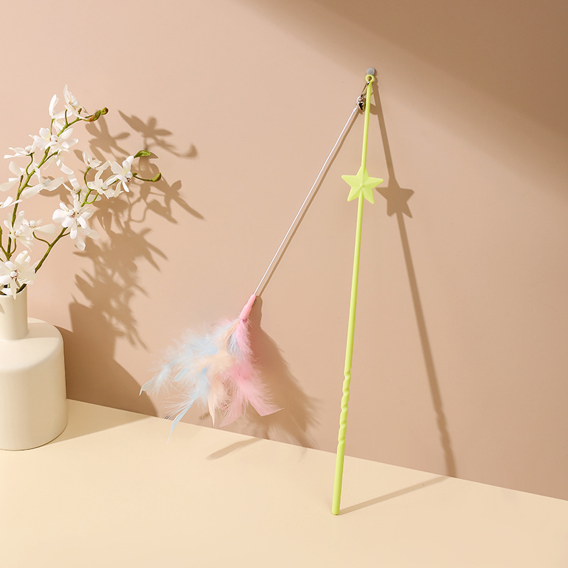 Star Teasing Cat Stick Pet Cat Toy with Bell Elastic Rope Feather Teasing Cat Rod Self-Happy Relieving Boredom Kitten Toy
