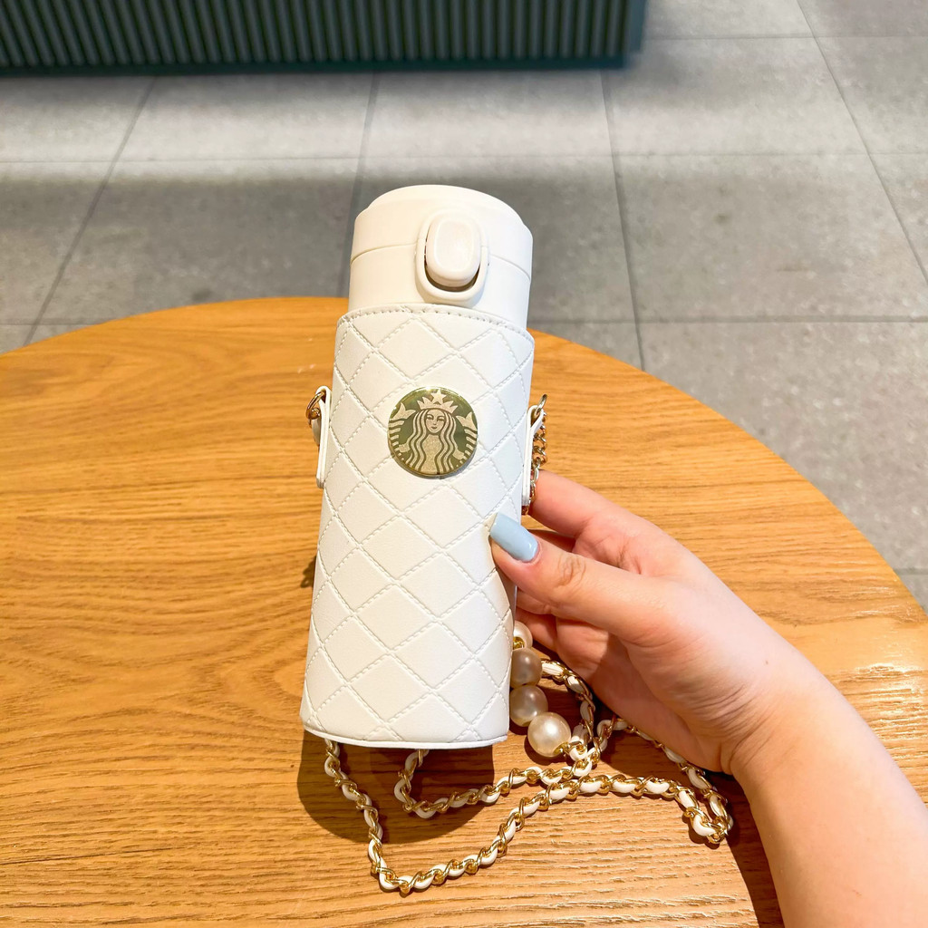 Starbucks Cup Christmas Gift Box Set Thermos Cup Pearl Chain Pure White Cup Notebook Holiday Gift Box Accompanying Stainless Steel Water Cup 355ml