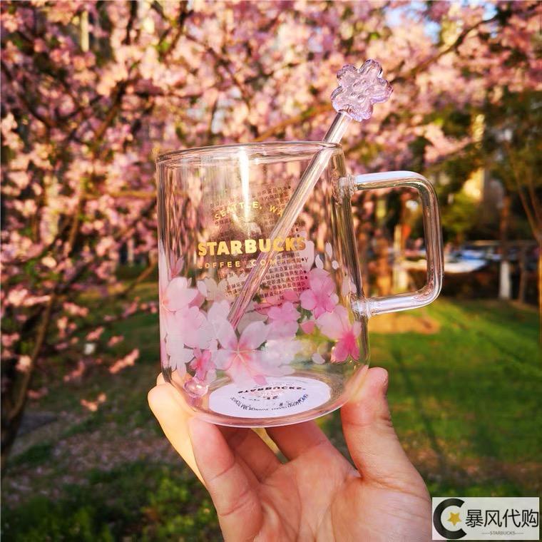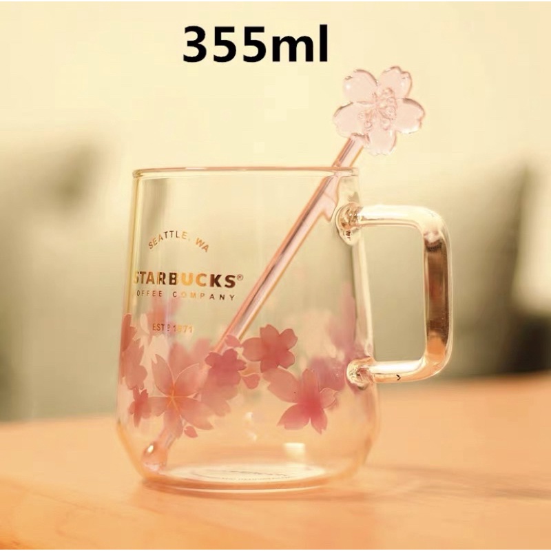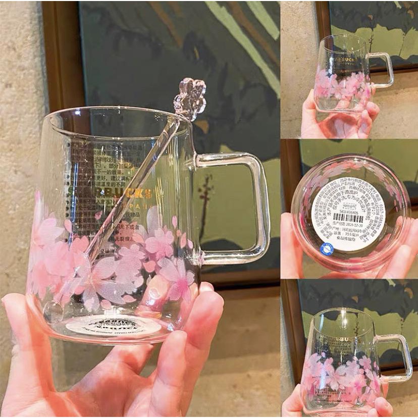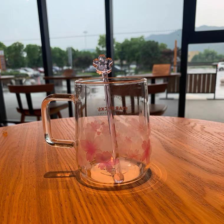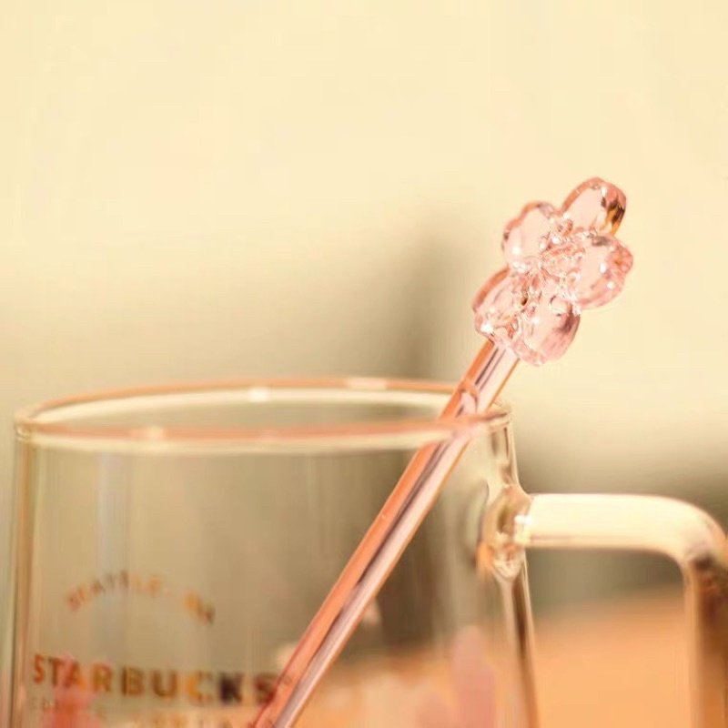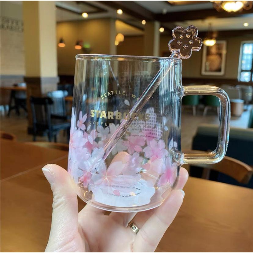 Starbucks Pink Sakura Mugs Glass Cup with Free Pink Stirrer