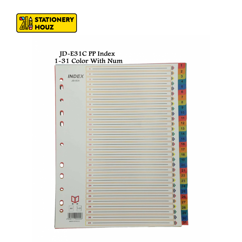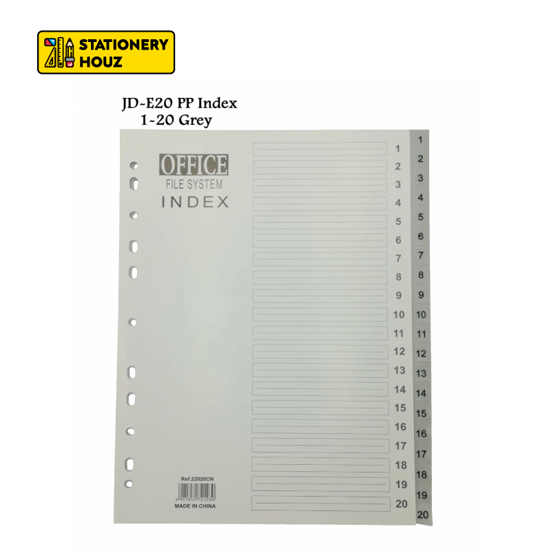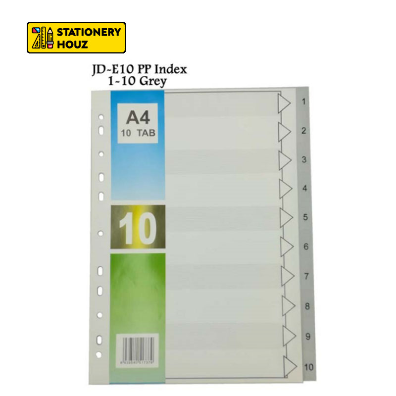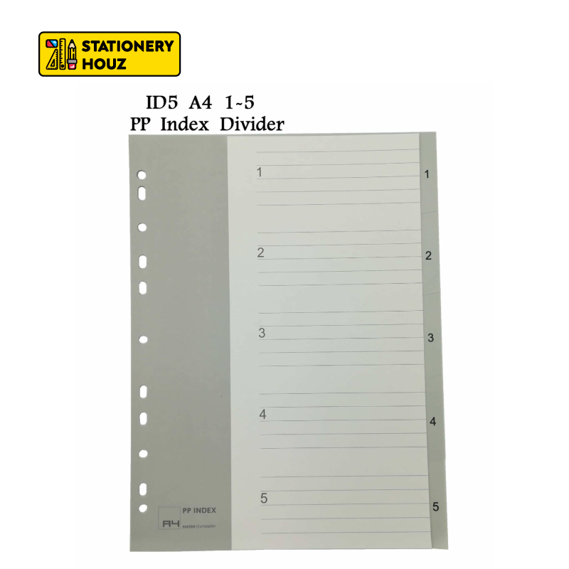 Stationery Houz A4 PP Index Divider/COLOR & GREY/Plastic Index Divider/Assorted Index Separator Paper Kertas Indeks A4