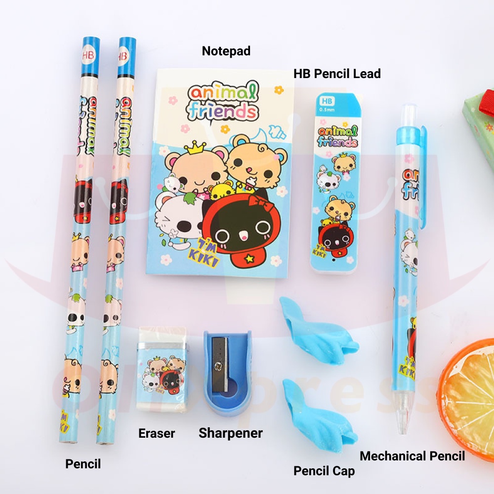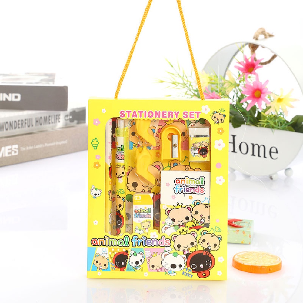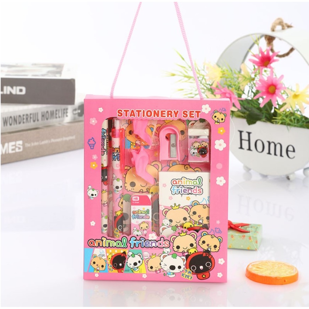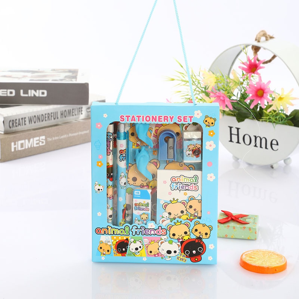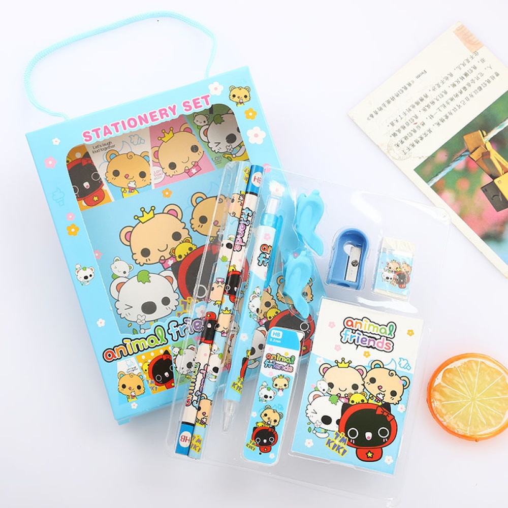Stationery Set Gift Box Pencil Eraser Notepad Book Cartoon School Supplies Cute Kawaii Gift 9pcs Set