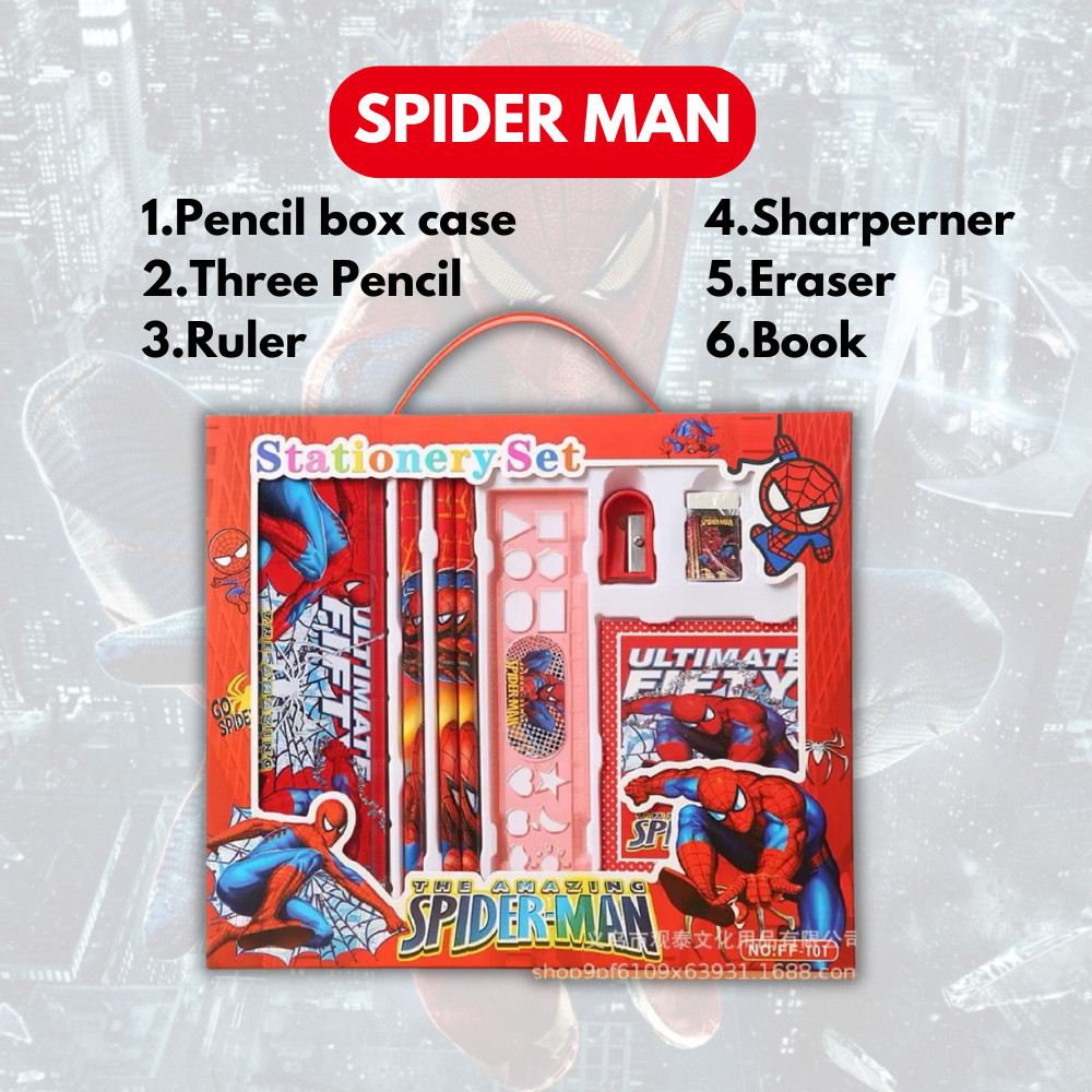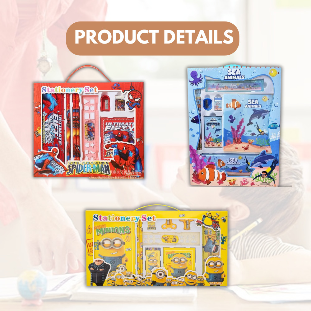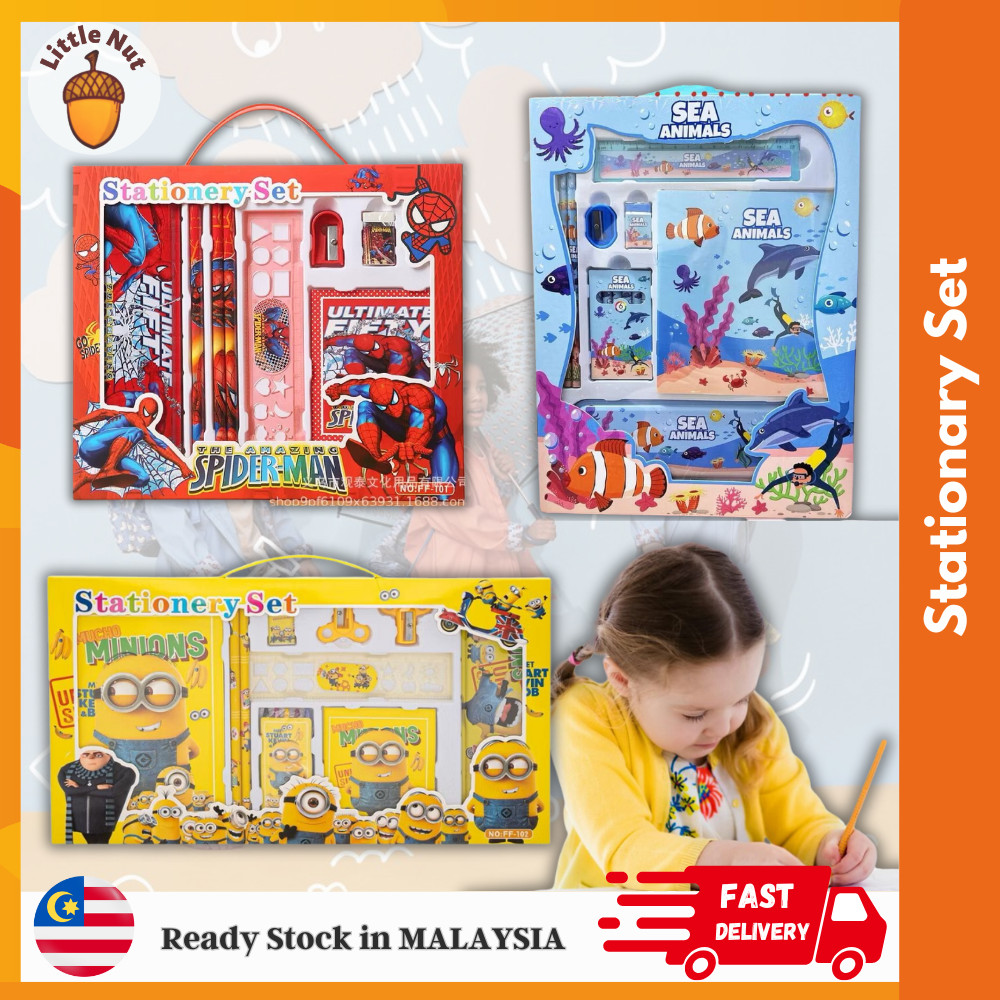 Stationery Set Spiderman Minion Sea Animal Cute Cartoon Pencil Box Eraser Ruler Kid Birthday Gift Party Bag Alat Tulis