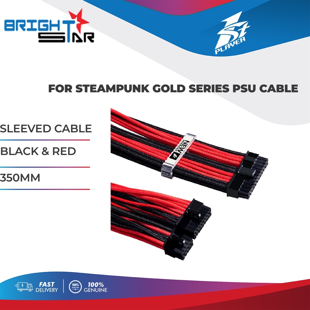 Steampunk Gold Series PSU Cable - Black & Red/White (350mm)