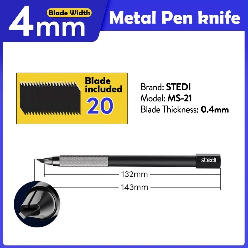 Stedi Pen Knife with Blades MS-21 for Gundam Model Carving Metal Engraving Knife Paper Cutting DIY Art Hand Craft