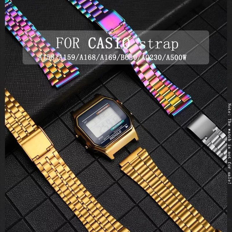 Steel Watchband for CASIO F-91W A158/A159W-N1/A168/A169/B650/AQ230/700 Classic Small Square SilverBlock 18mm Metal Strap