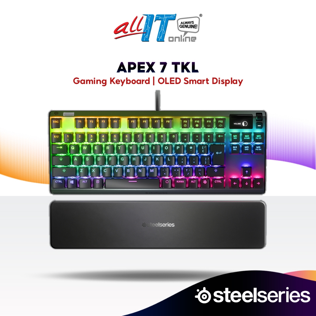 SteelSeries APEX 7 TKL Mechanical Tenkeyless Gaming Keyboard with Smart Display - Linear & Quiet (Red Switch)