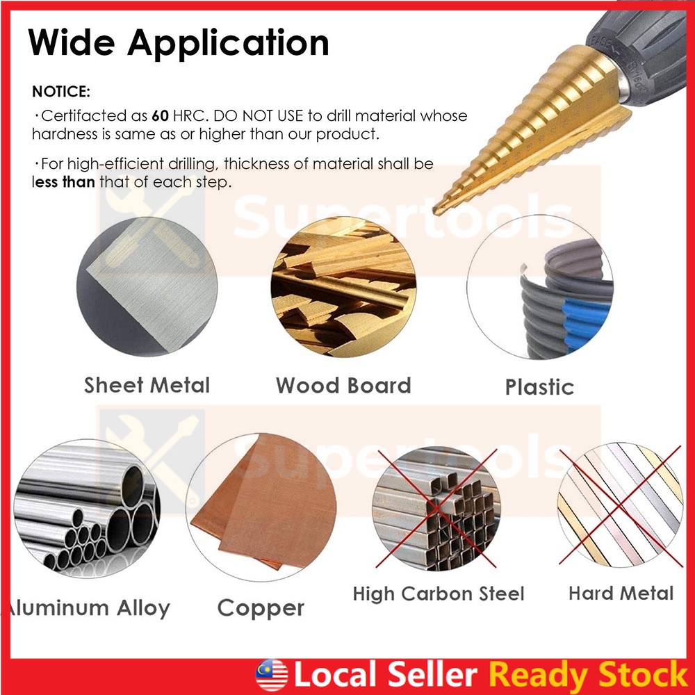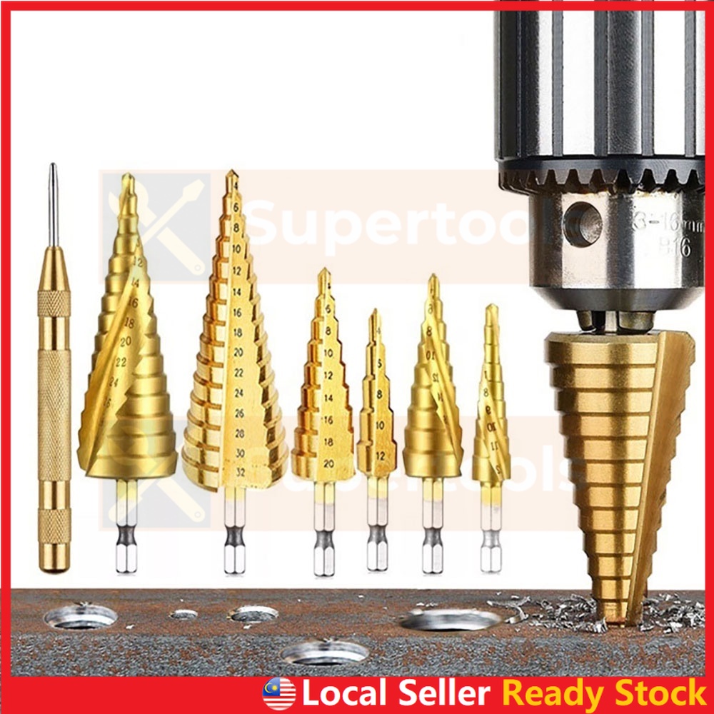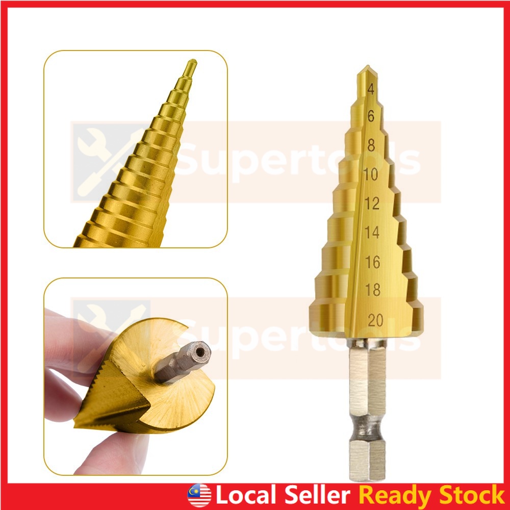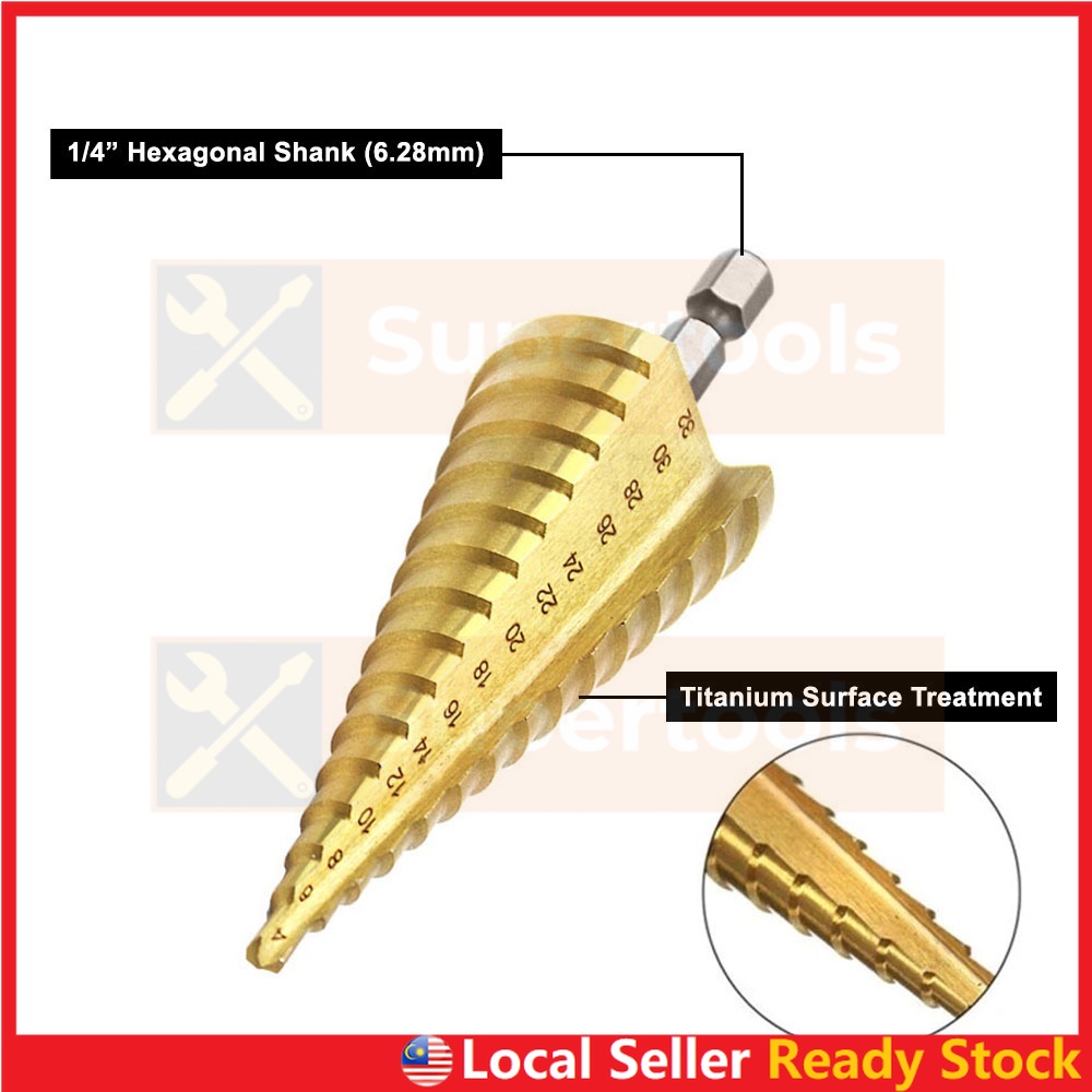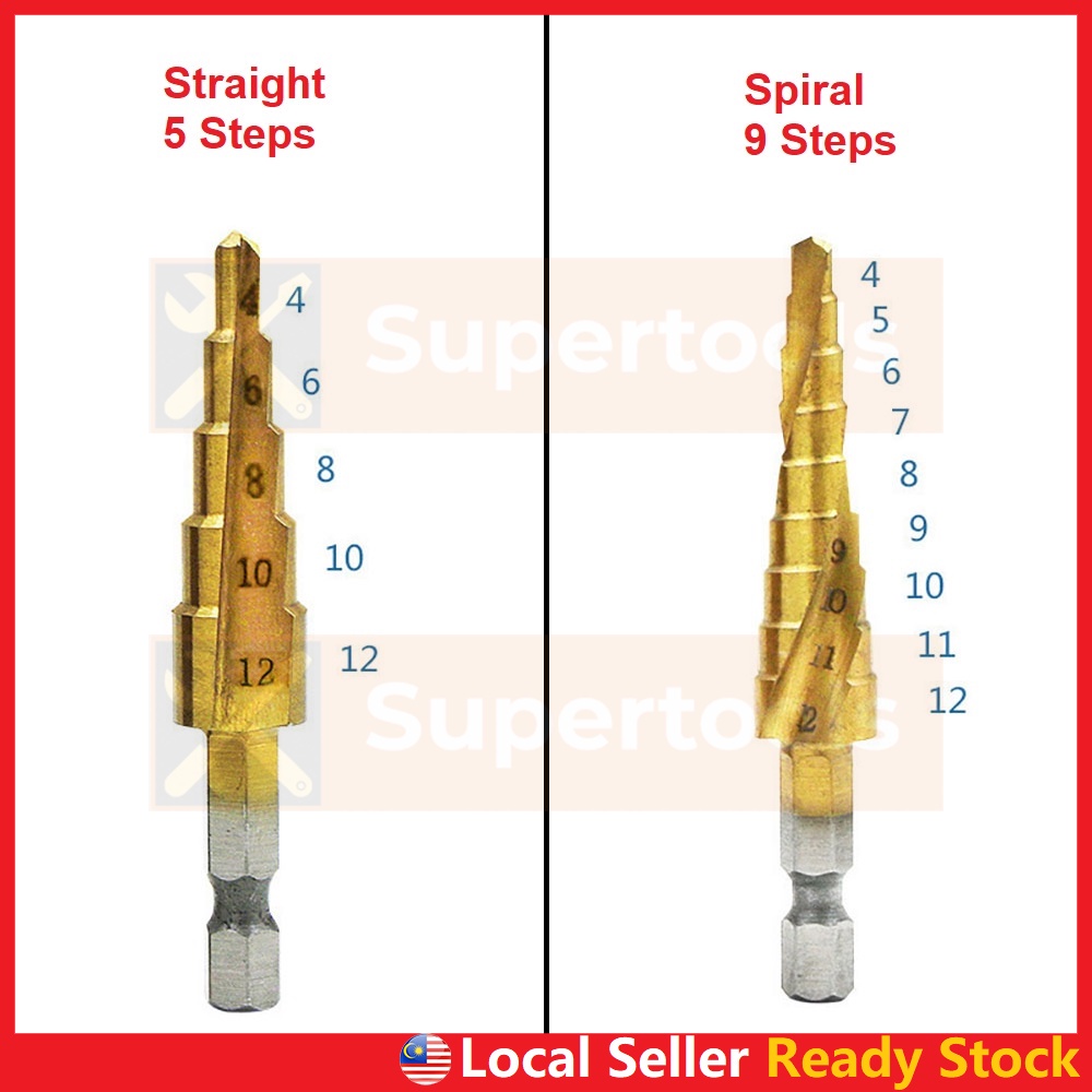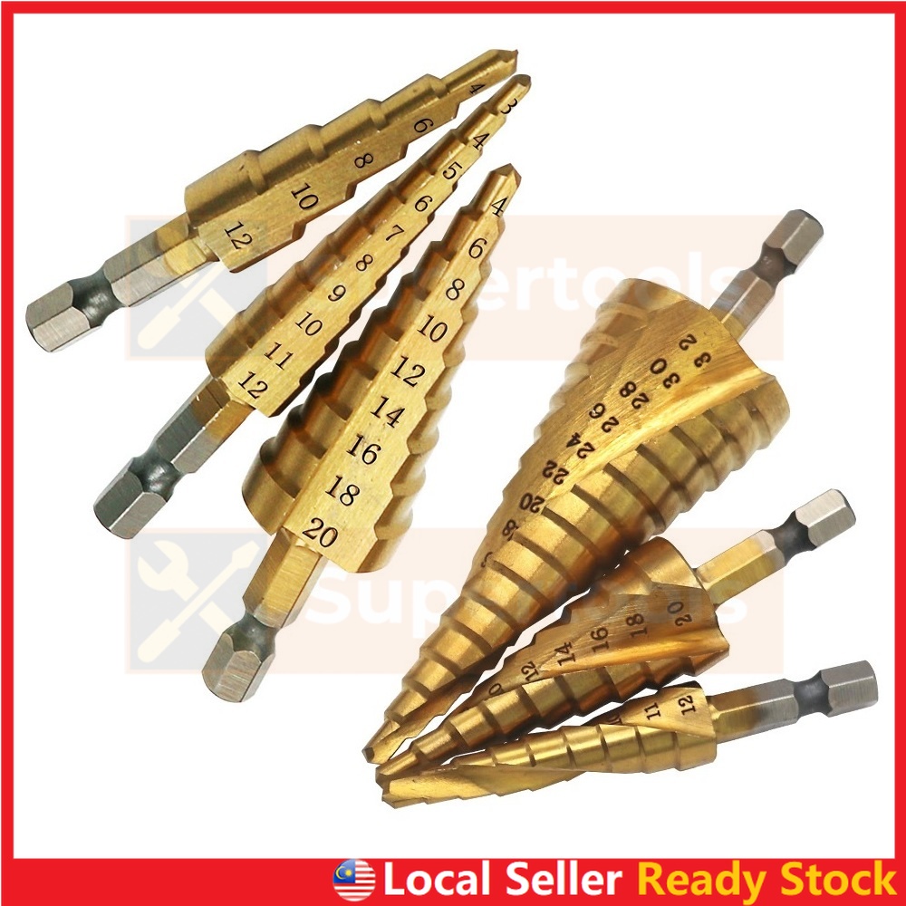Step Drill Bit HSS Titanium Coated Straight or Spiral Hex Shank Metal Cone Hole Opener Cutter Taper for Power Tool