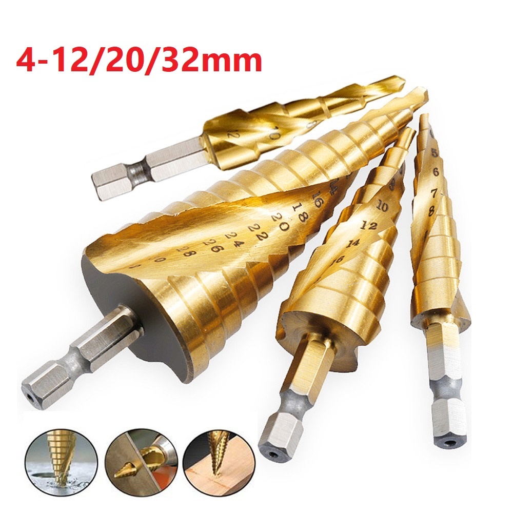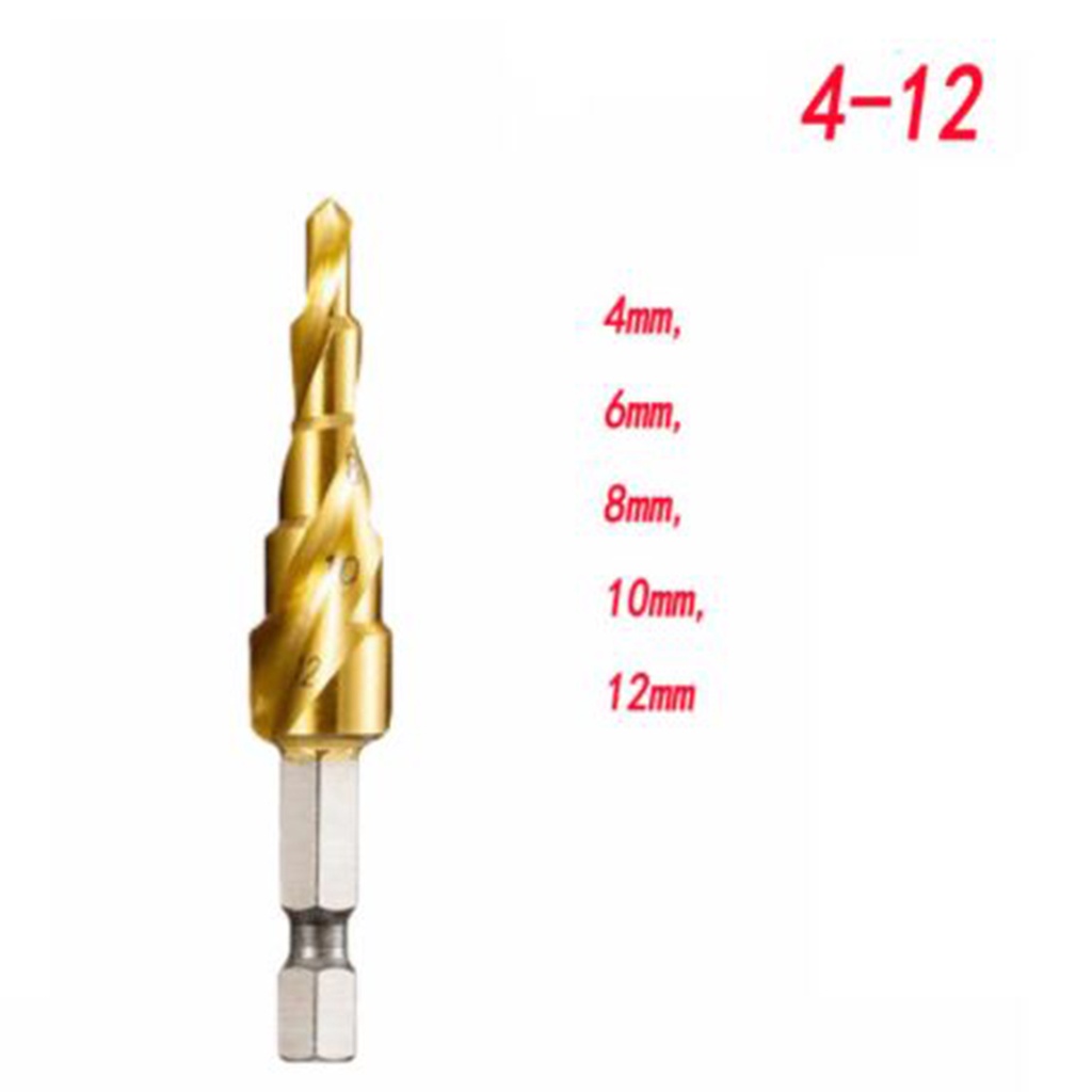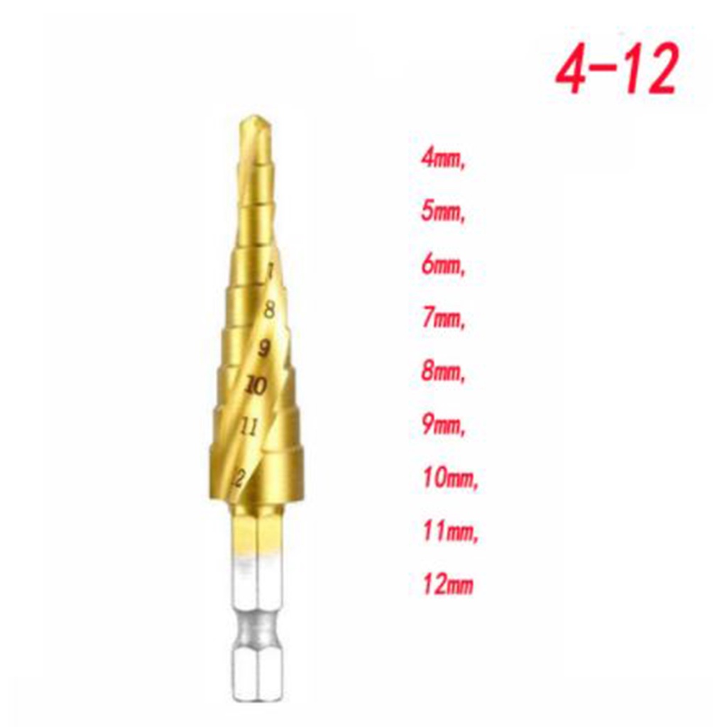 Step Drill Bits Cone Detailing Grooved HSS Hex Shank Titanium Coated Tool