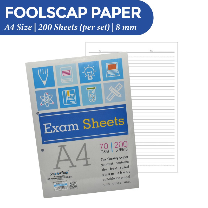 Step by Step Foolscap Paper Exam Sheet Paper A4 Size 70 GSM of 8 mm Width 48 // 200 Sheet Set