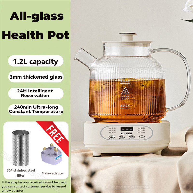With Filter🔥1L Electric Health Pot 3mm Thickened All-glass Kettle Teapot Intelligent Reservation&insulation 养生壶 水壶