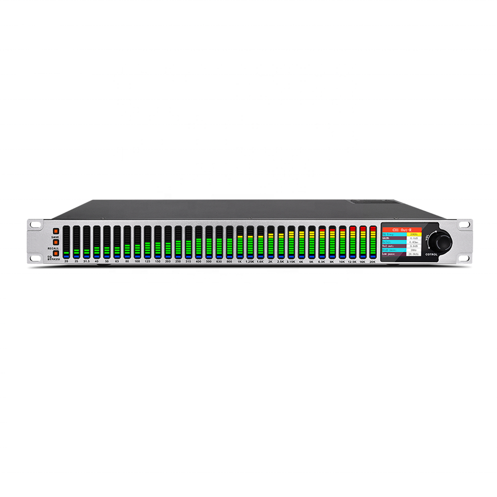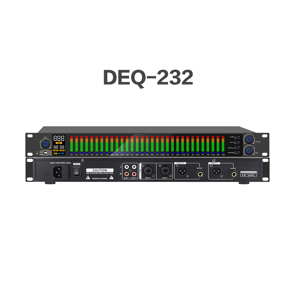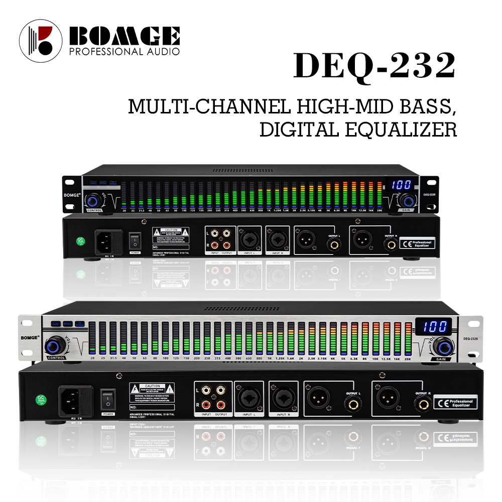 BOMGE DEQ-232B Stereo Audio Mixer, Graphic Equalizer, 31-Band Balance Effects Controller, Digital DJ Mixer Processor