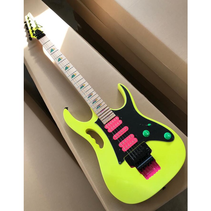 Steve Vai Ibanez Green 77 Electric Guitar Pyramid Inlay Floyd Rose Tremolo, Black Hardware