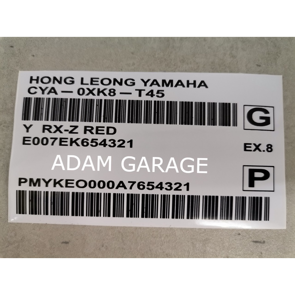Sticker Barcode Yamaha RXZ Sticker Motor Enjin Sticker Head