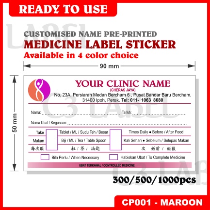 Sticker Beg Ubat / Custom colour Medicine Label sticker / Medical Label Saiz: (90 x 50 mm)