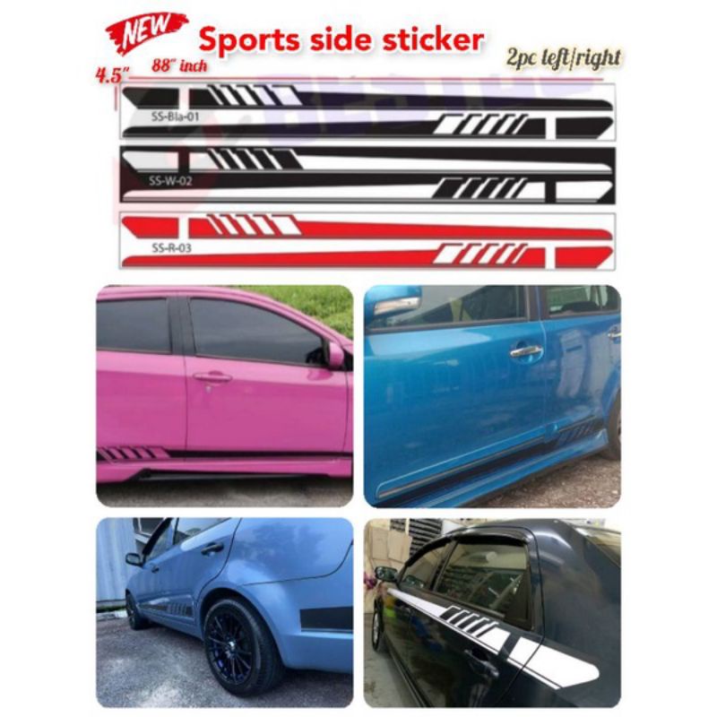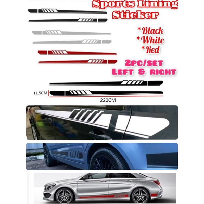 Sticker Body Kereta Lining Sports Car Door Sticker Side Skirtings kiri kanan