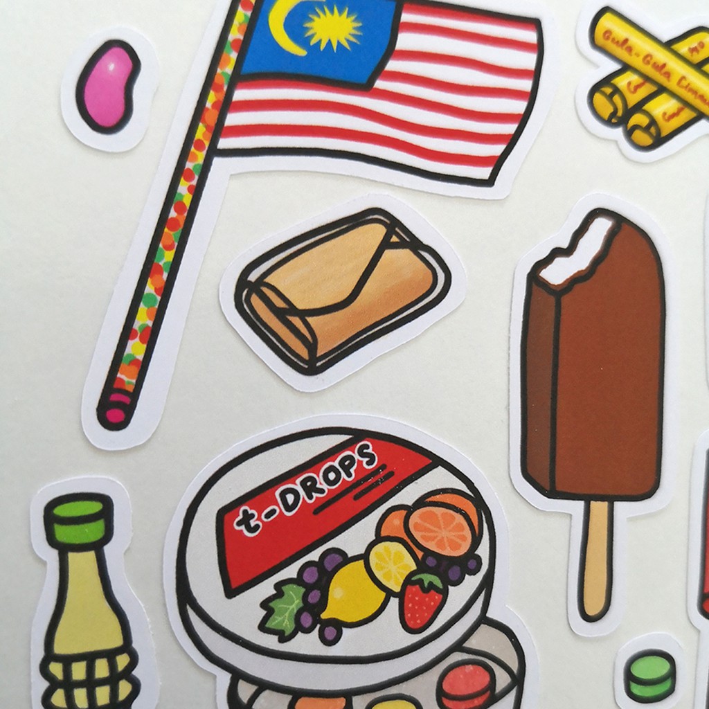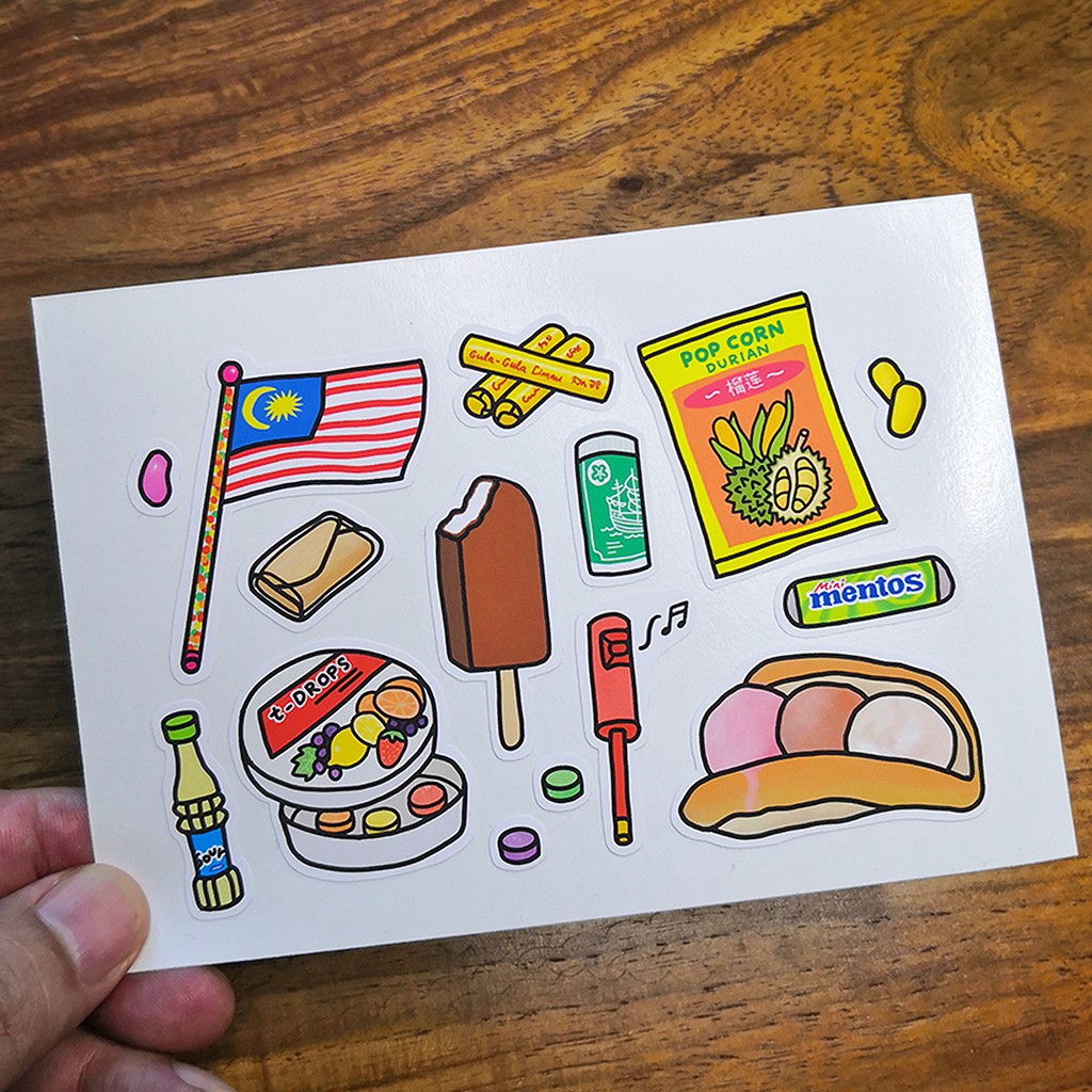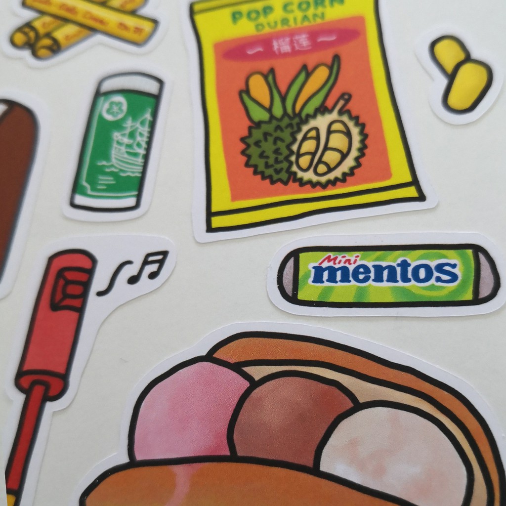 Sticker Jajan, 15 Pelekat Premium Nostalgia Snacks: Aiskrim Roti / Mentos / Kacang Tumbuk / Gula Bendera