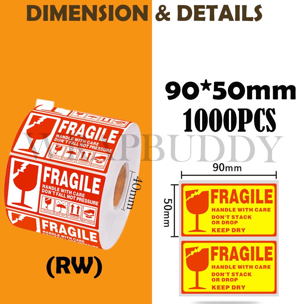 Sticker Mudah Pecah 1000pcs 9cmx5cm Mudah Pecah Sticker Fragile Sticker Roll Fragile Label