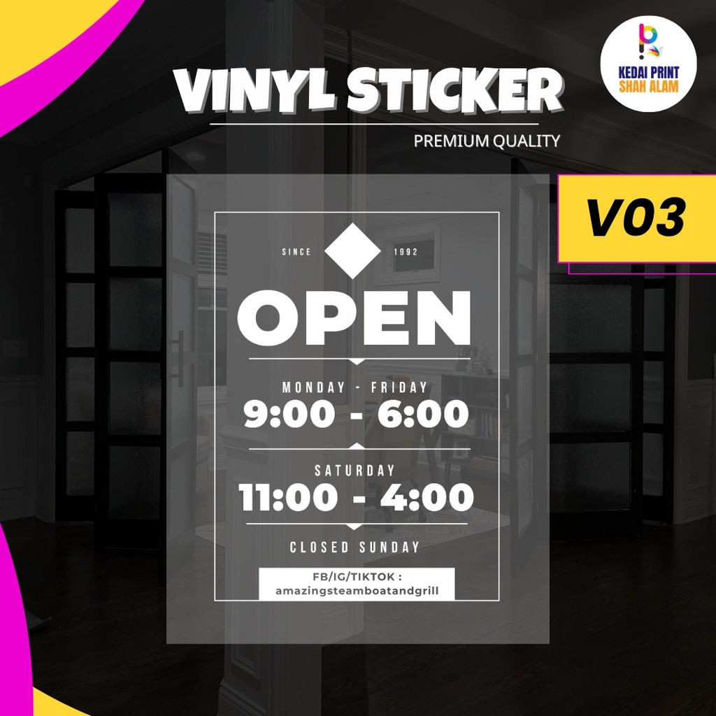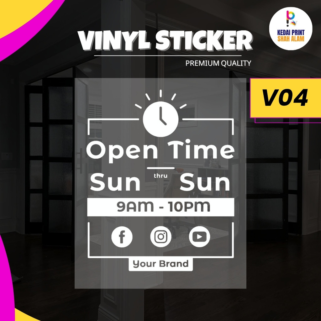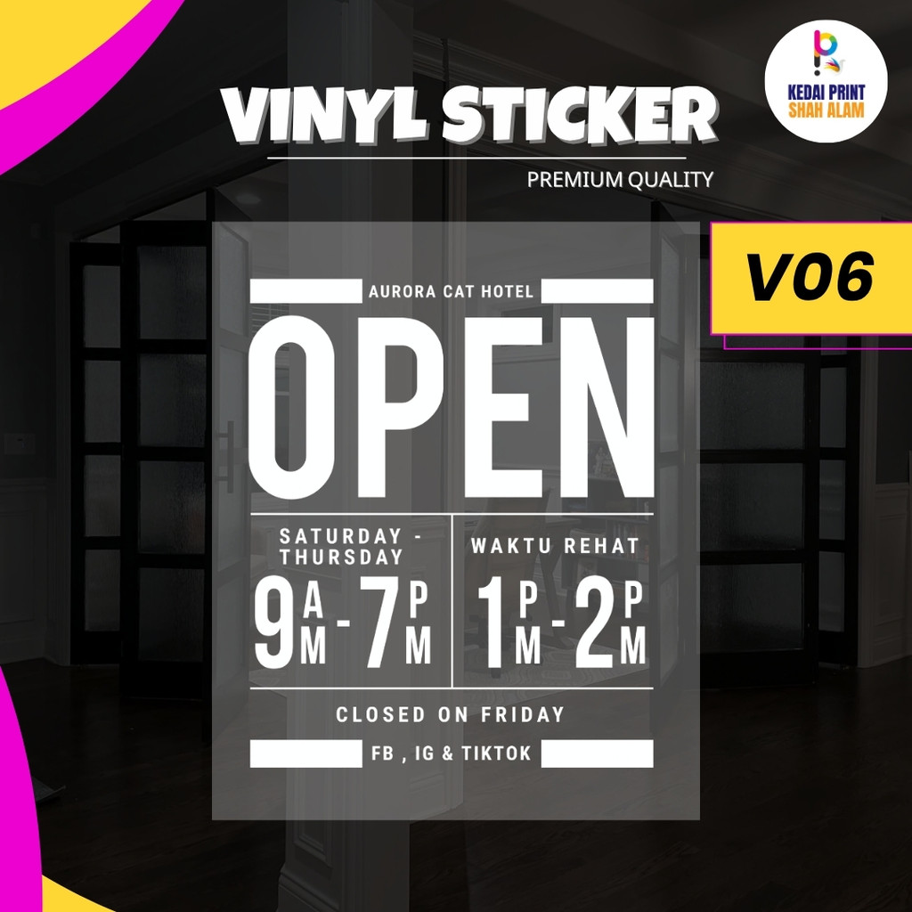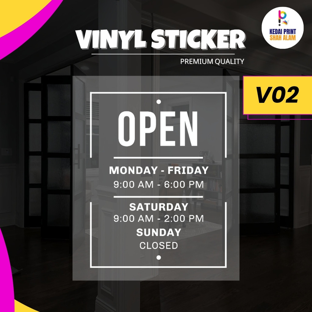 Sticker Pintu Vinyl Waktu Operasi Business Operating Hour Glass Door