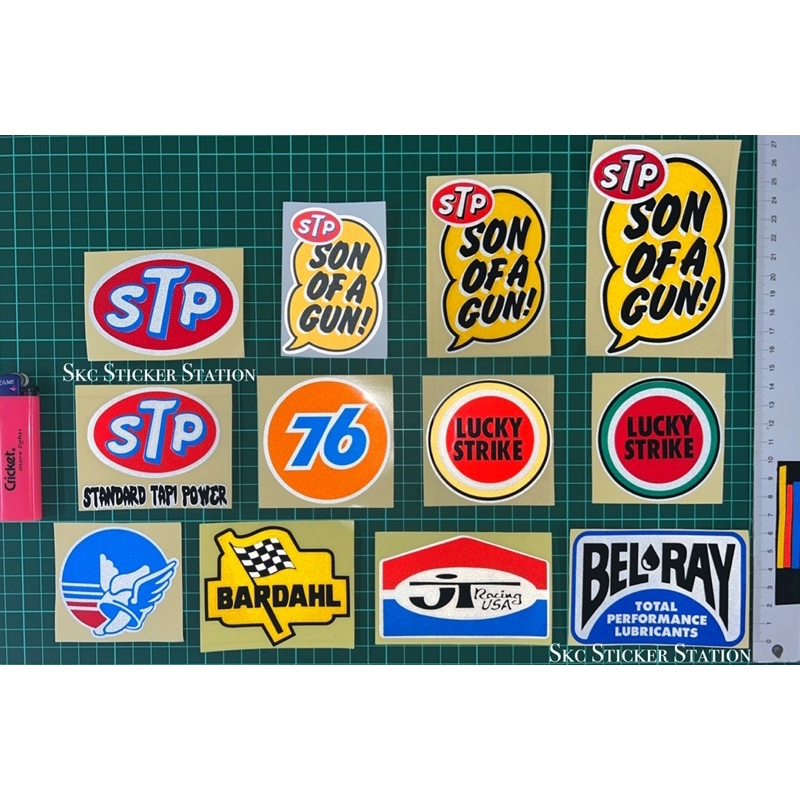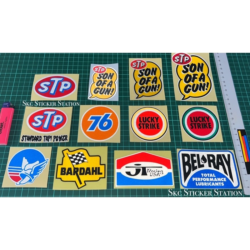Sticker Retro Motor (STP/76/Belray/LuckyStrike/Gauloises/Son of a Gun/JT/Bardahl) Overlapping Reflective Sticker #retro
