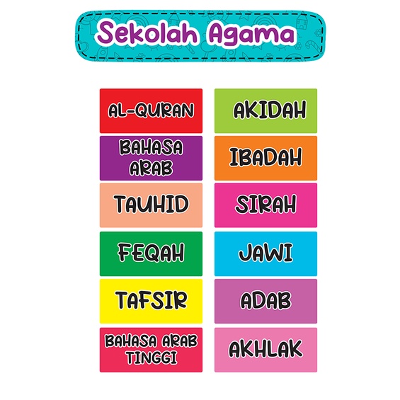 Sticker Subjek Mata Pelajaran sekolah agama & kebangsaan fancy