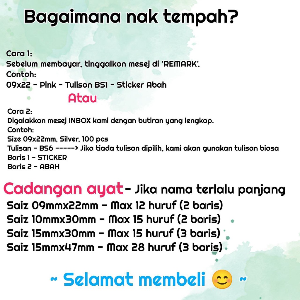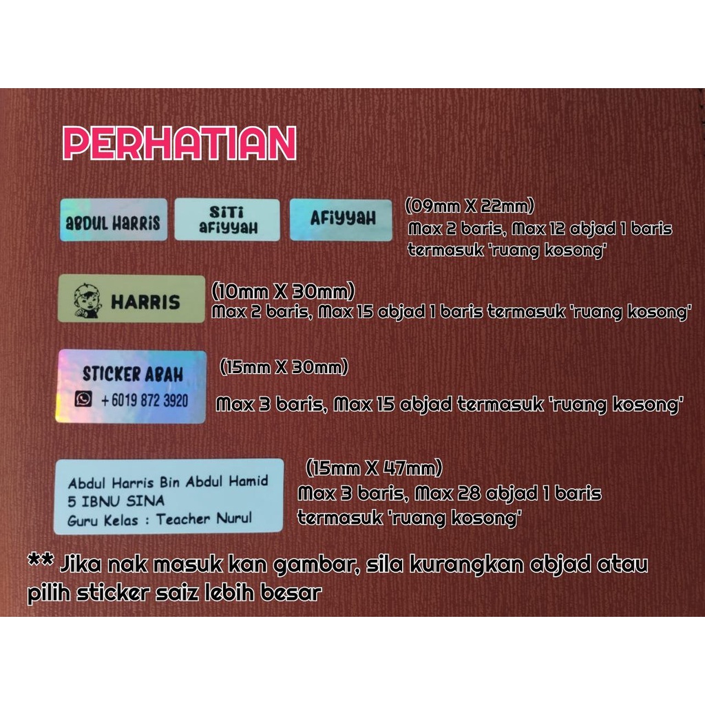Sticker WATERPROOF/Sticker Nama Kalis Air/Sticker Buku/Sticker Label Product/Kids Name Sticker/STicker AIskrim