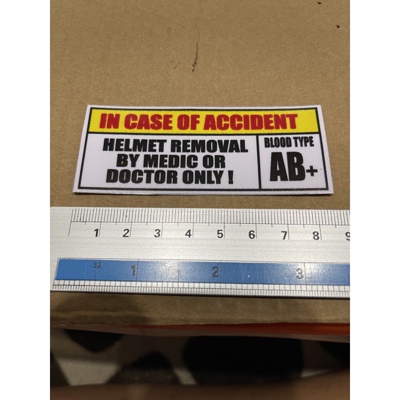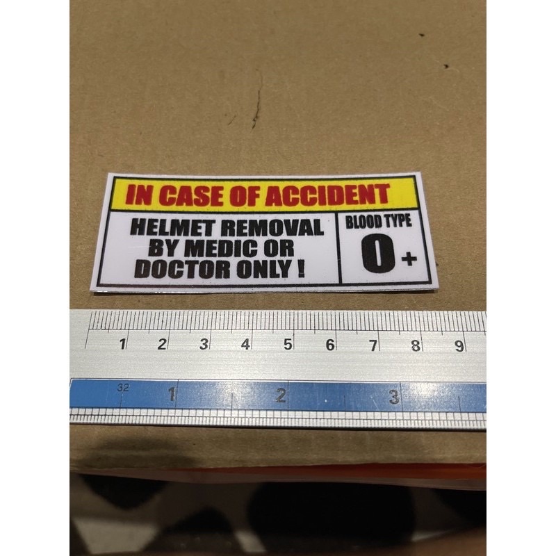 Sticker warning in case accident