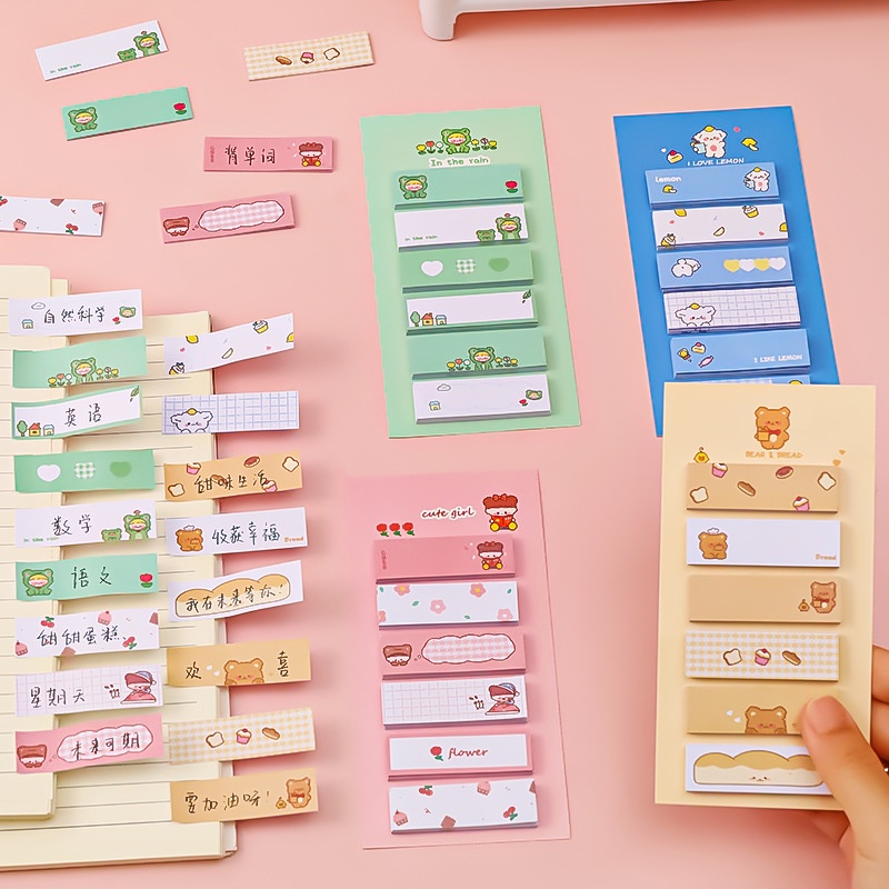 Sticky Notes | Morandi Ins Colorful Cartoon Sticky Note | Kids Memory Stationary Sorting Label Memo Pad Office Student