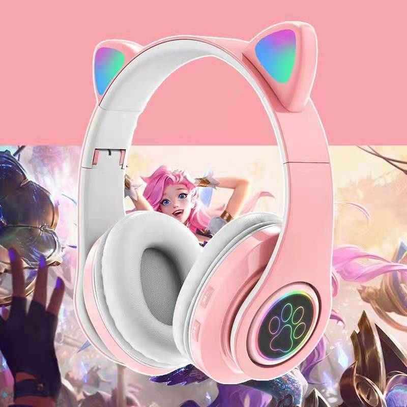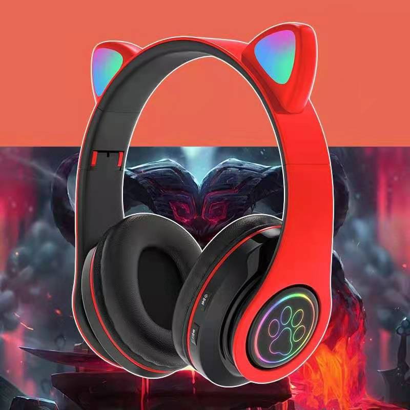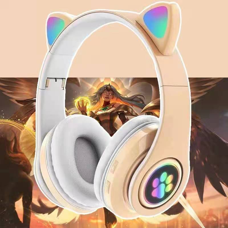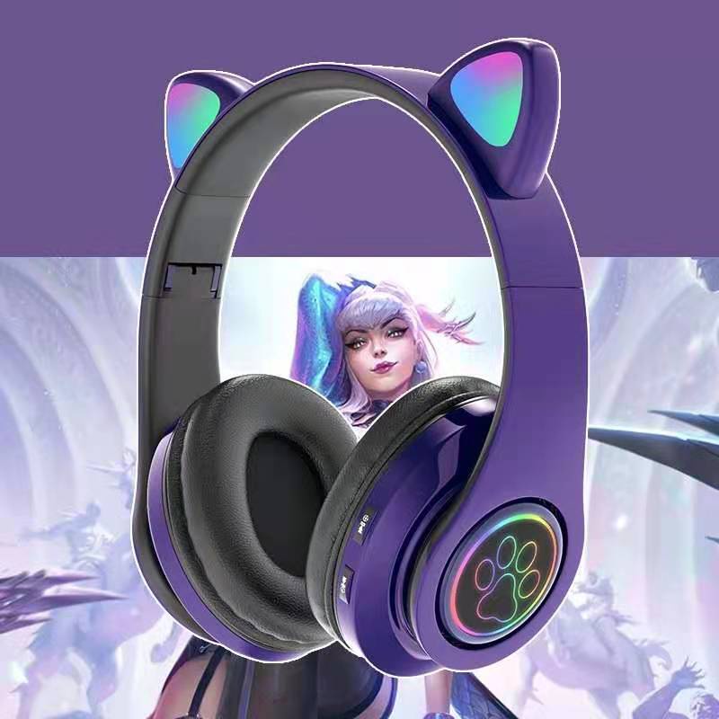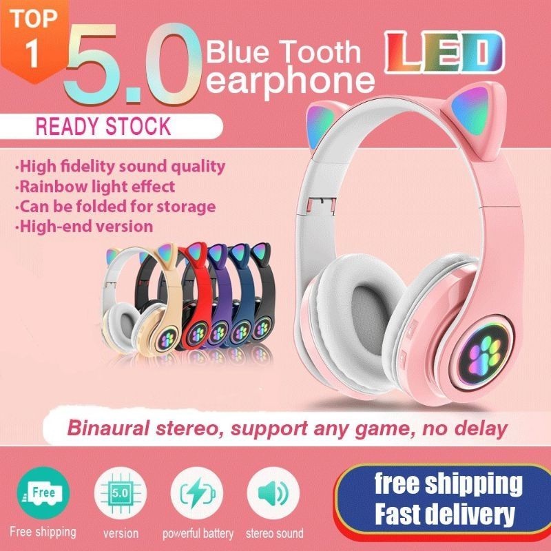 Stock In Malaysia cat ear headphone wireless headphone wireless earphone bluetooth earphone LED cute Headset with mic