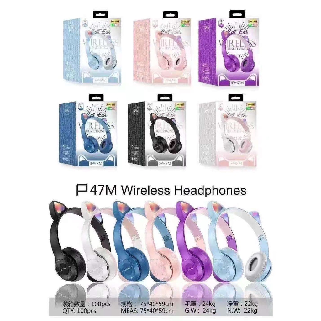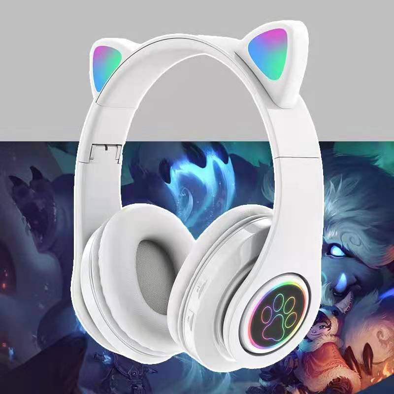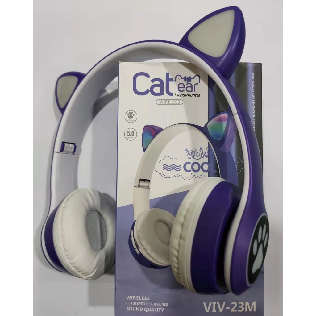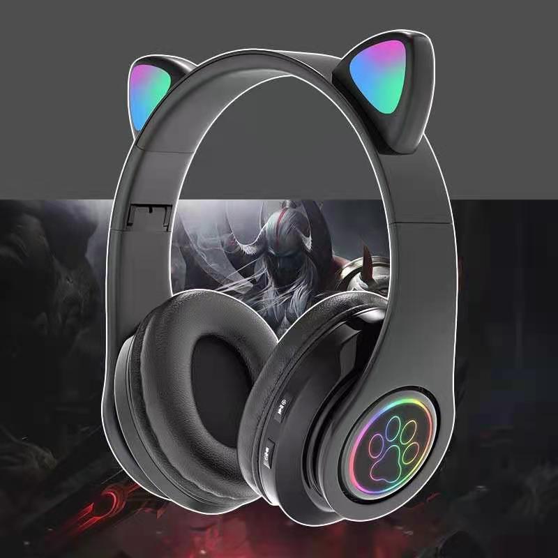 Stock In Malaysia cat ear headphone wireless headphone wireless earphone bluetooth earphone LED cute Headset with mic