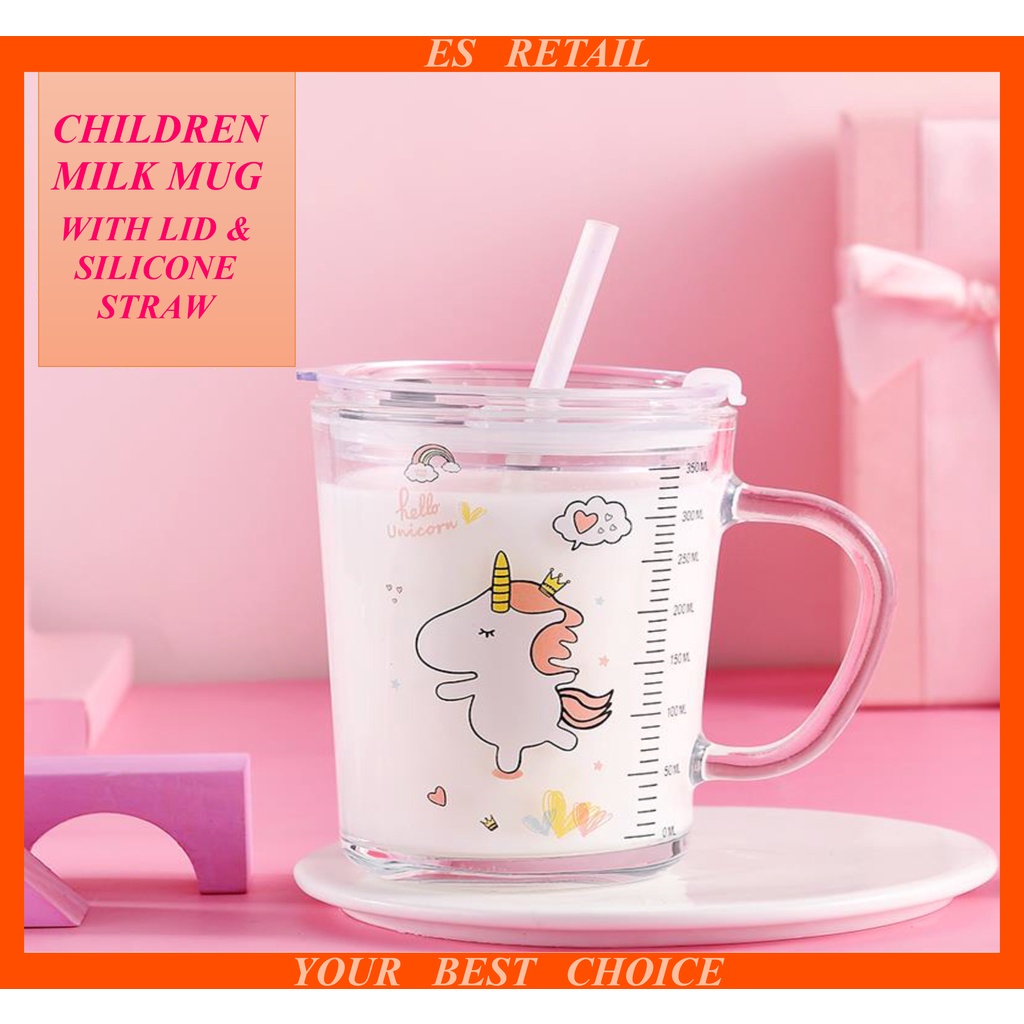 Children milk mug with straw Milk cup Milk mug Cup Milk glass Cawan susu kanak-kanak Mug susu Cawan susu Mug Cawan