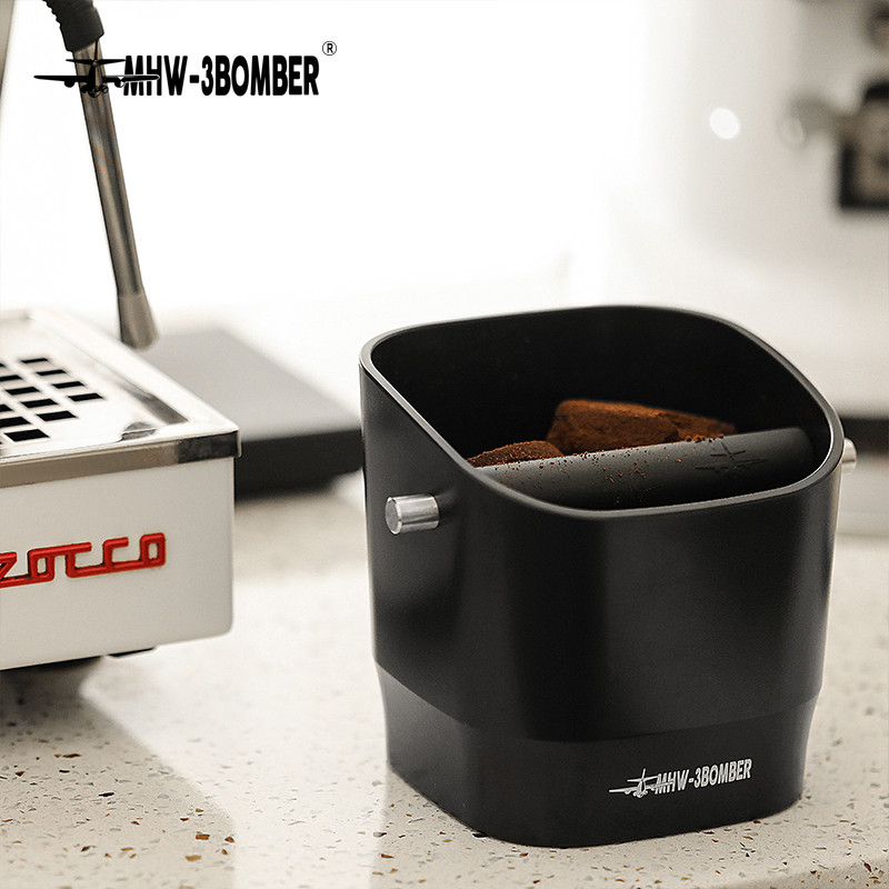 MHW-3BOMBER Espresso Knock Box Dismountable Knock Bar and Non-Slip Base Square Coffee Grounds Trash