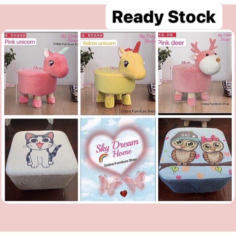 Stool Chair/ Stool Fabric Wooden Leg/ Animal Stool/ Cute Stool (Ready Stock)