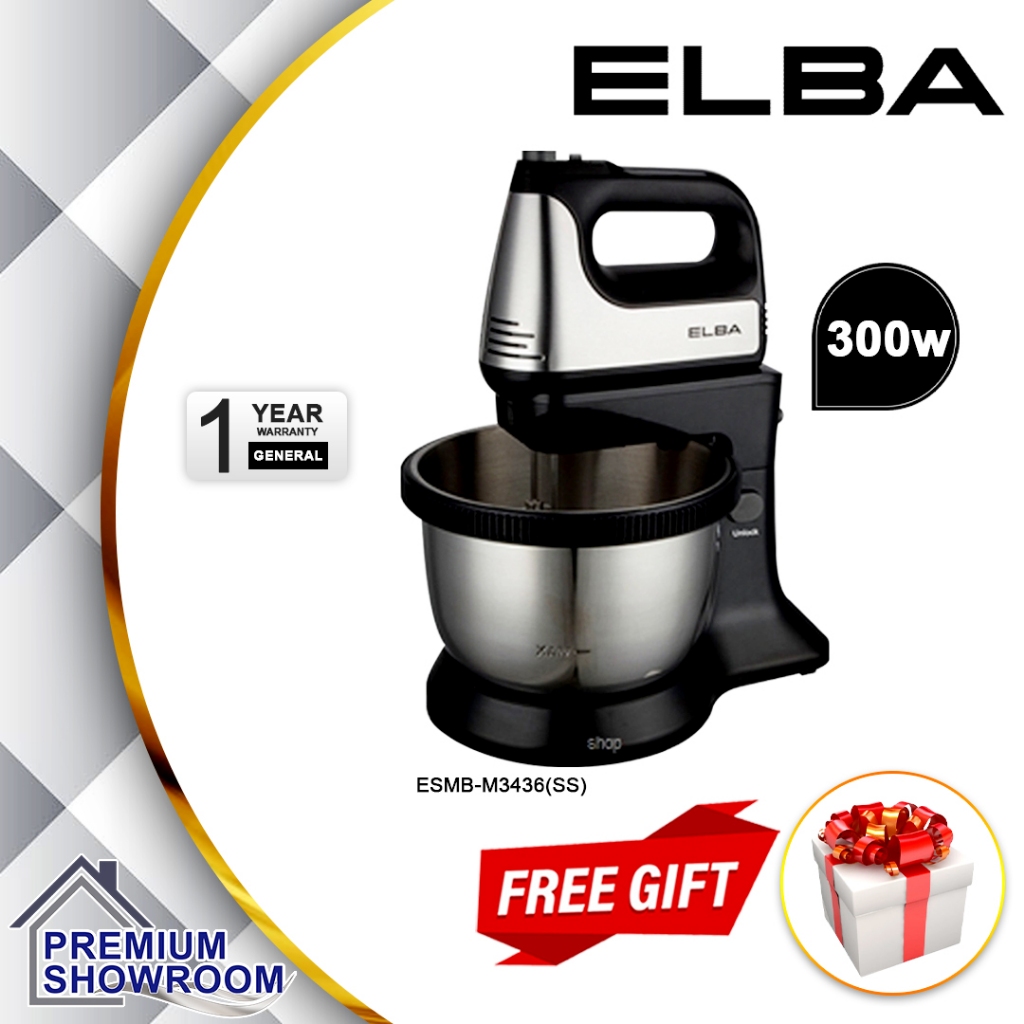 (Authorised Dealer) ELBA Stand Mixer 3.4L (5 Speed with Turnable Stand Bowl) ESMB-M3436(SS)