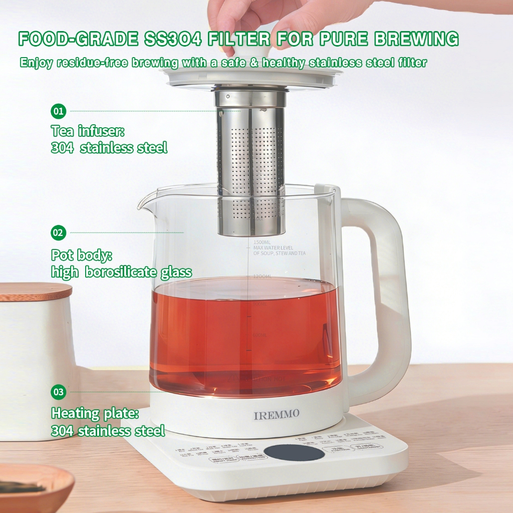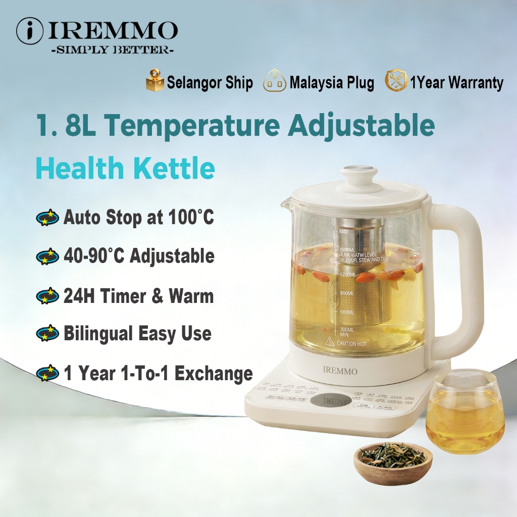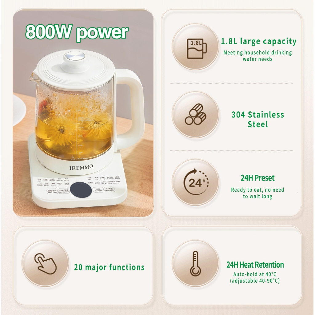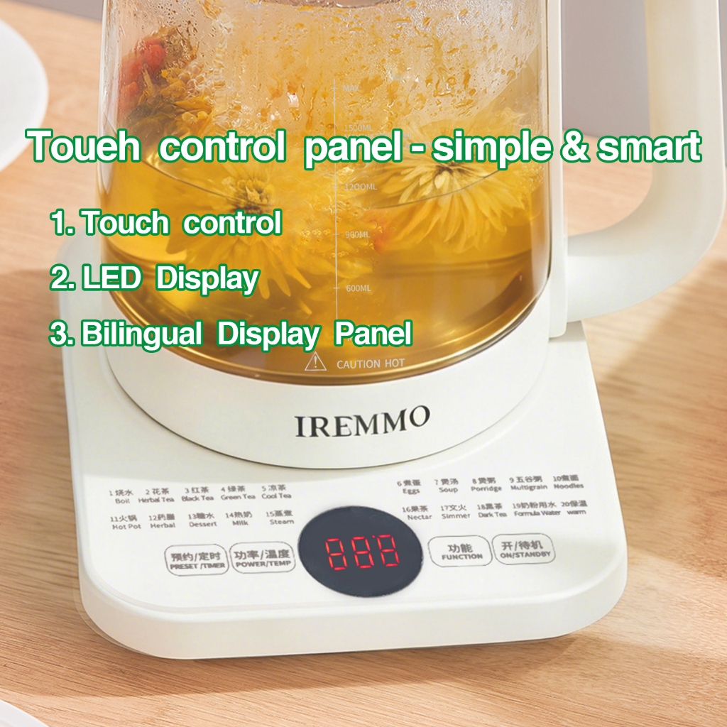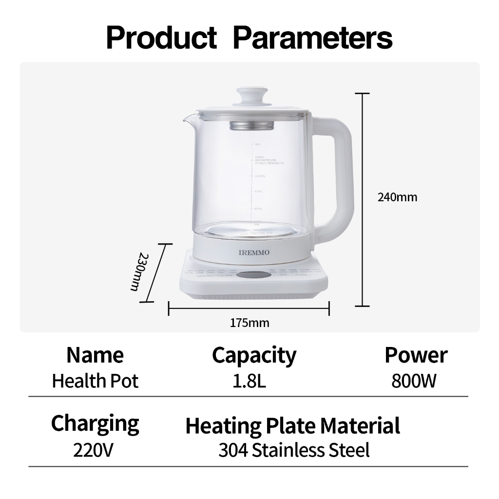 IREMMO 1.8L Multifunction Health Kettle Temp Control Glass Electric Kettle Bilingual GS-YSH1801