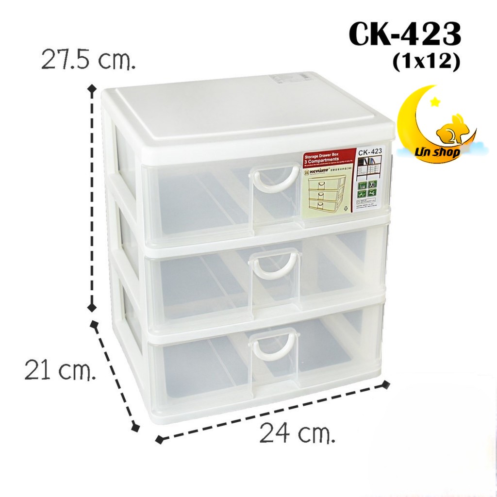Storage Box 3-Layer Drawer Clear White Plastic Size 24x20.5x27.5 Cm. Keyway Brand Model CK-423