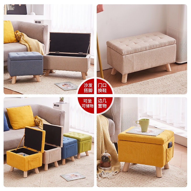 Storage Ottoman Stool Chair Home Fabric Footstool Living Room Sofa Ottoman Stool Multifunctional Shoe Stool