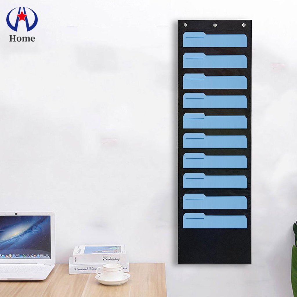 Storage Pocket Chart Wall Hanging File Organizer for File Folder Paper with 10 Large Pockets 3 Hangers SHOPSKC1272