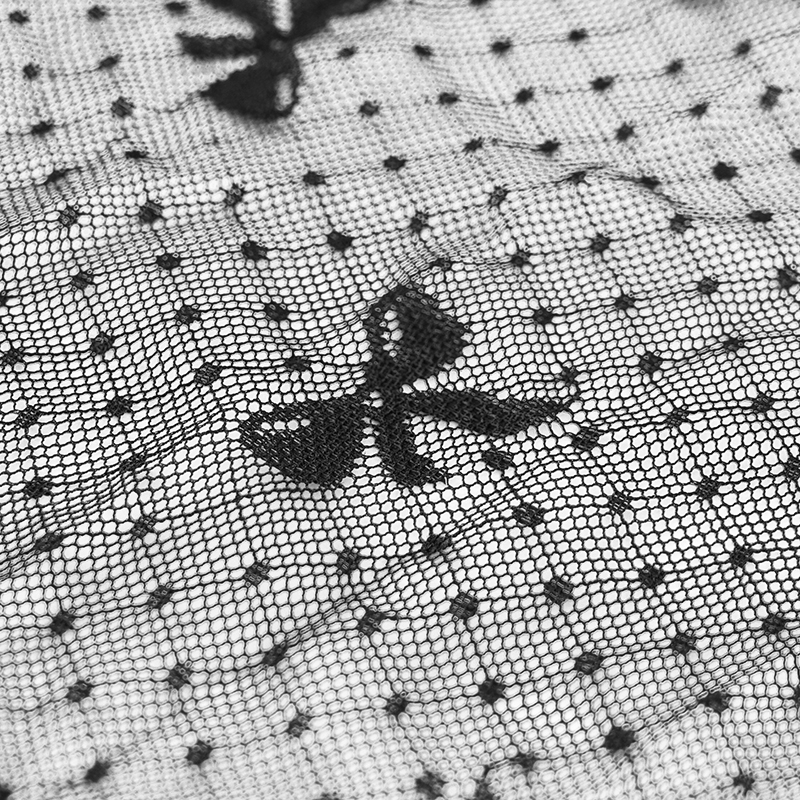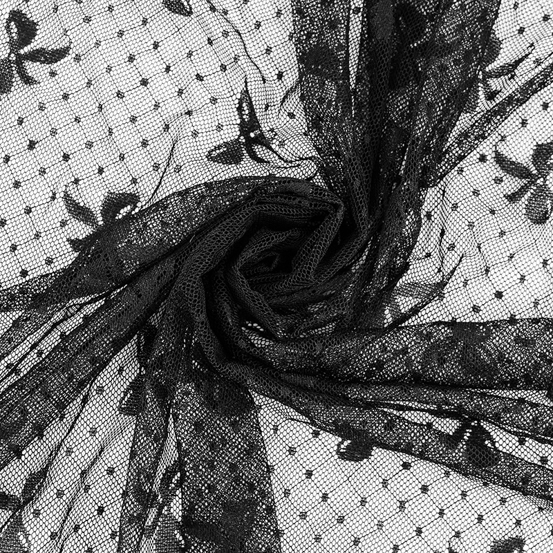 Stretchy black mesh fabric bowknot pattern mesh fabric with elastane for dress Summer price in 0.5 Meter/ 1 Yard TJ0305