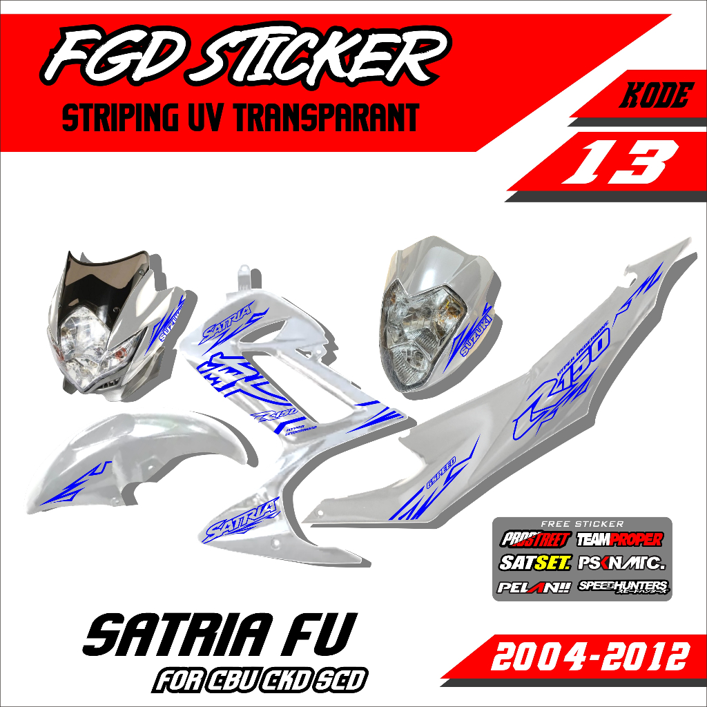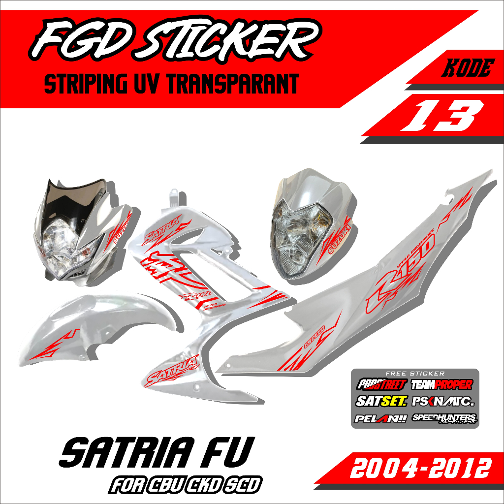 Striping SUZUKI SATRIA FU CBU CKD SCD TRANSPARENT / SUZUKI SATRIA F150 BARONG YEAR 2004-2012 LIST of UV VARIATIONS minimalist FGD 013