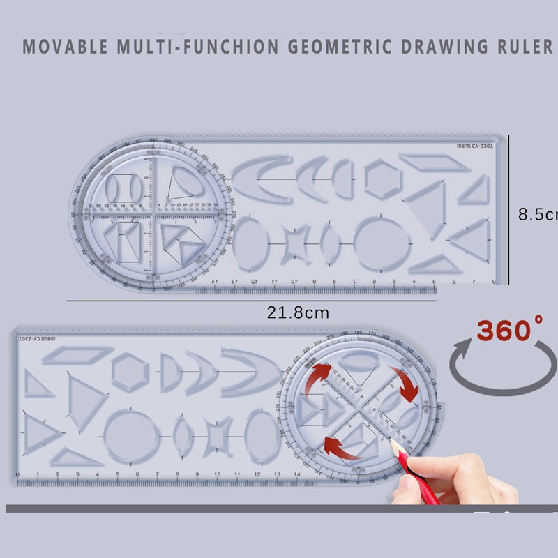 Student Multifunctional Ruler Movable Angle Recognition Drawing Ruler Geometric Ruler Ruler Triangle Ruler Rotating Circle Angle Protractor Measuring Ruler Set