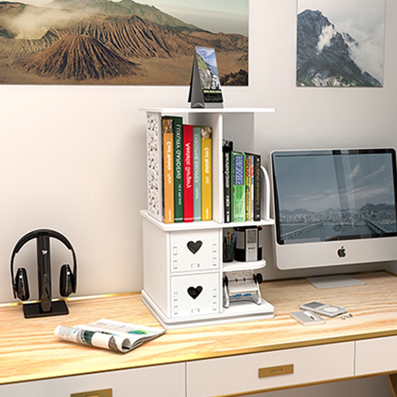 Student desktop rotating storage shelf revolving tabletop organizer children bookshelf with drawer desktop space saver