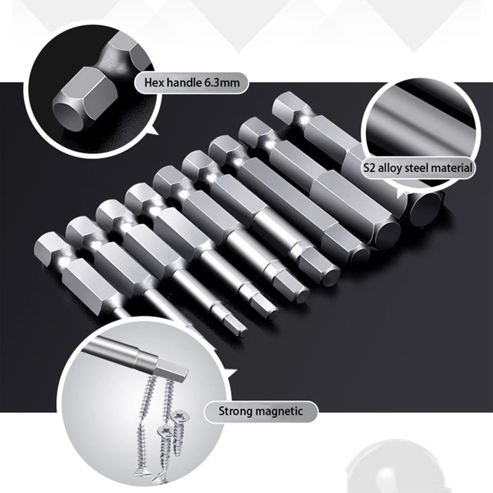 Sturdy Magnetic Hex Screwdriver Set 10PCS Alloy Steel 1/4 Metric 50mm H15 12