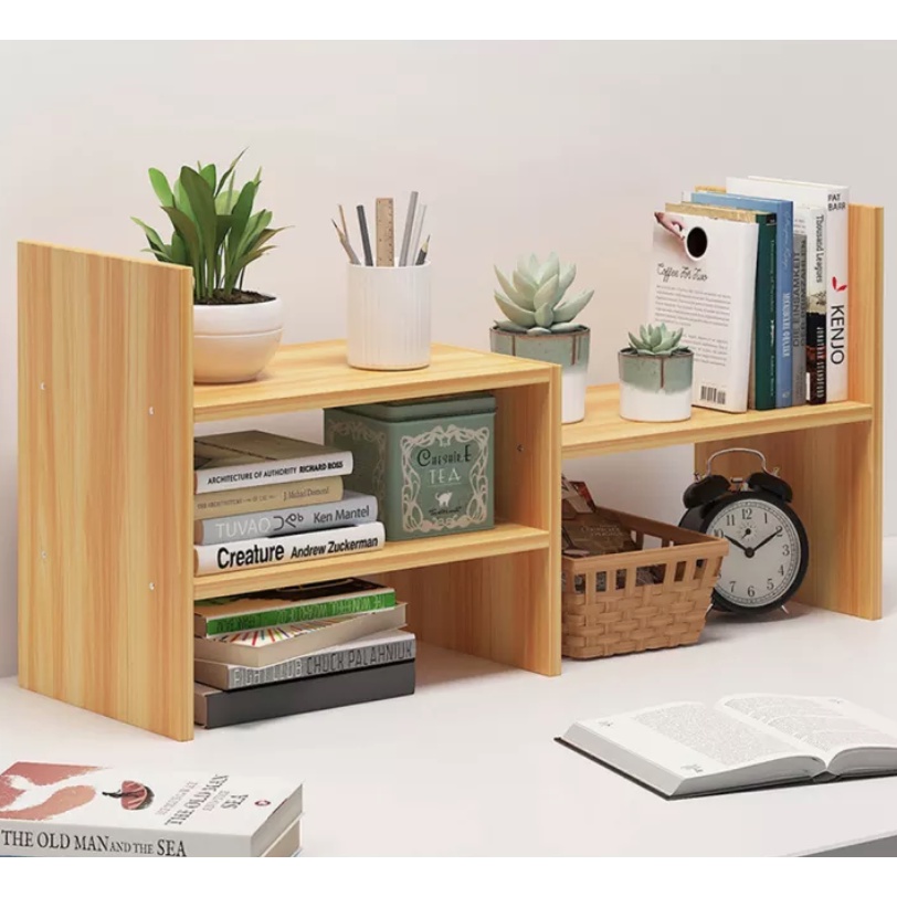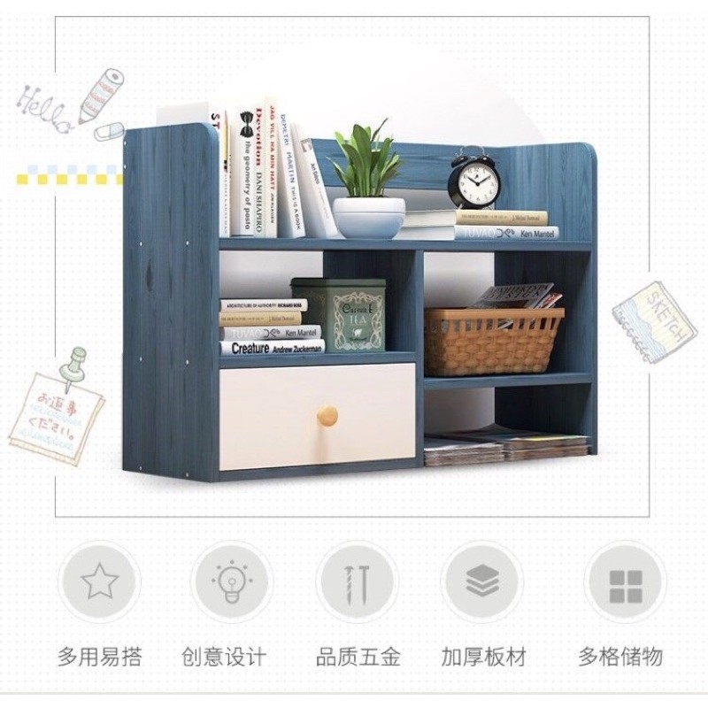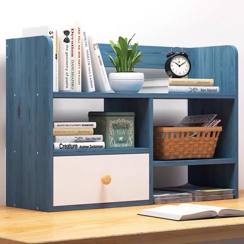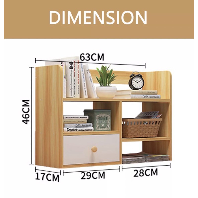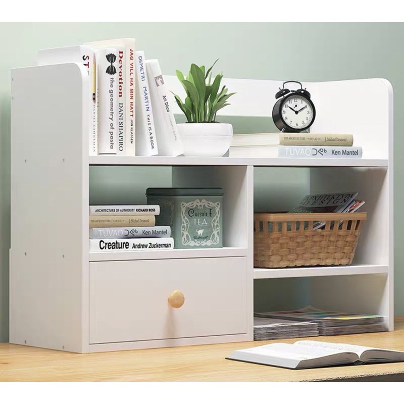 Sturdy Wooden Book Rack with Drawer Table Top Book Shelves Table Organizer Desk Organizer Rak Buku