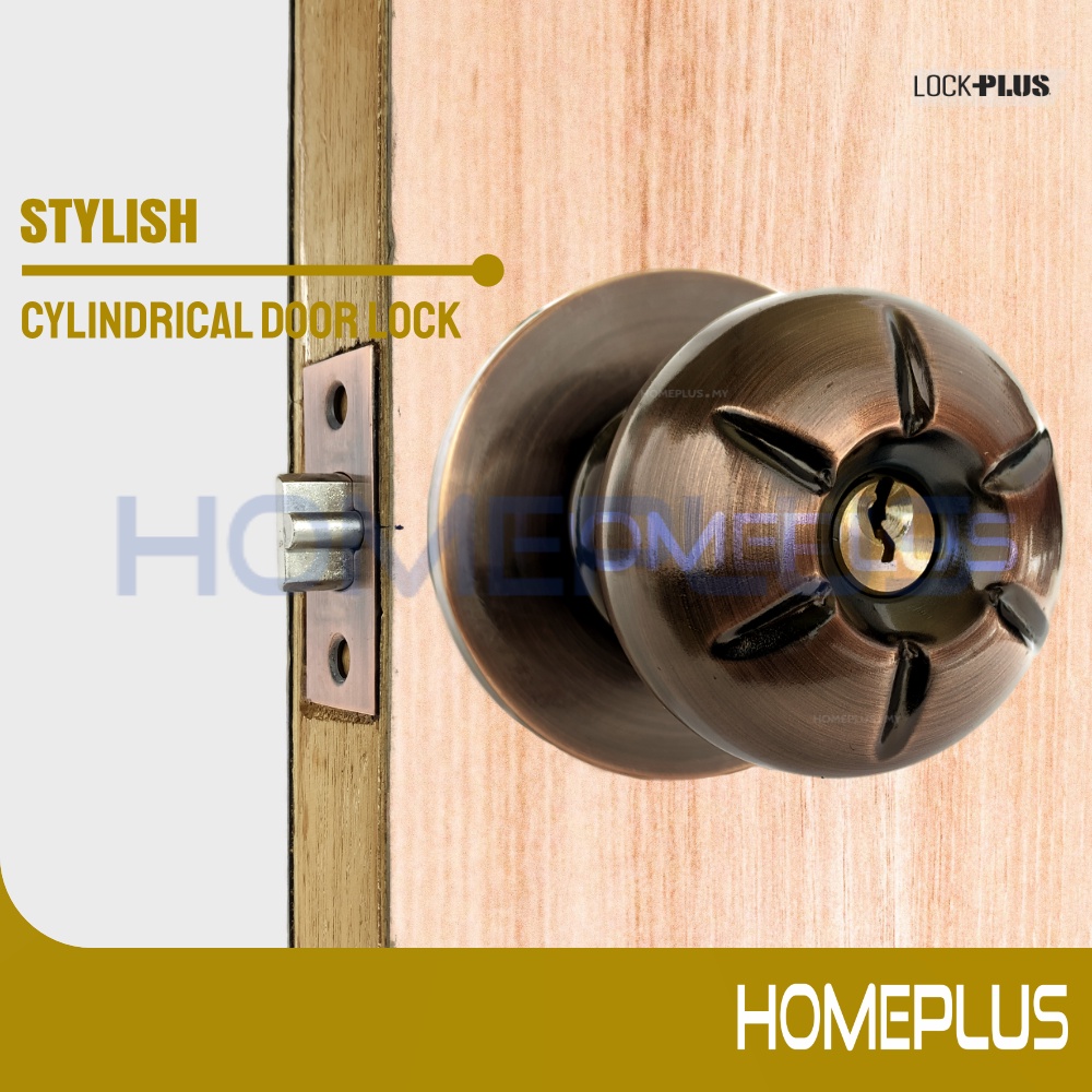 Stylish Antique Cooper Quality Cylindrical Round Knob Entrance SN AC Security Door Lock Tombol Pintu Set
