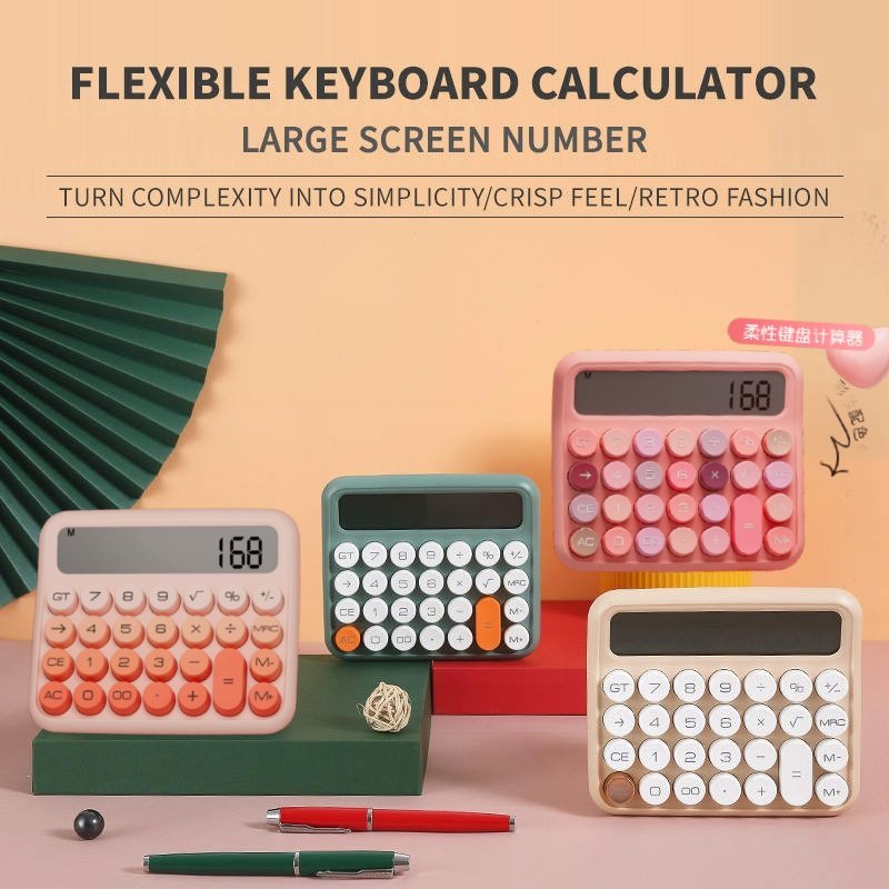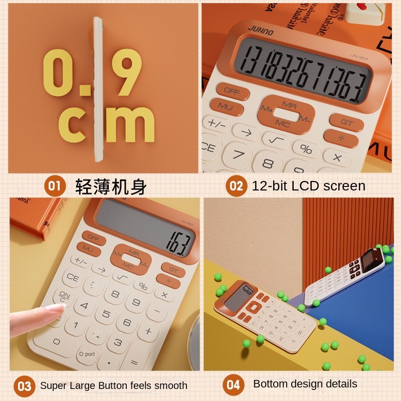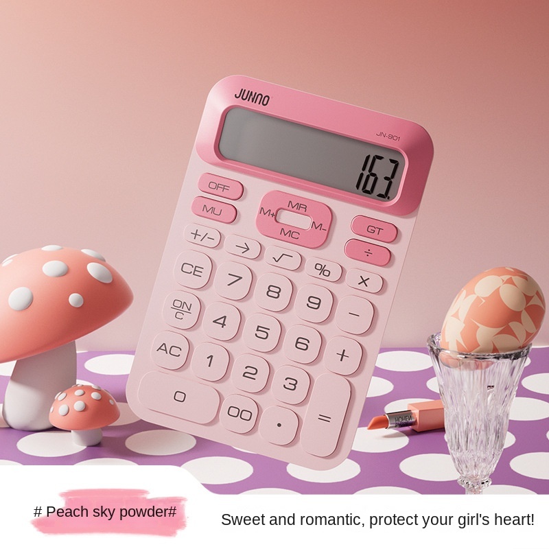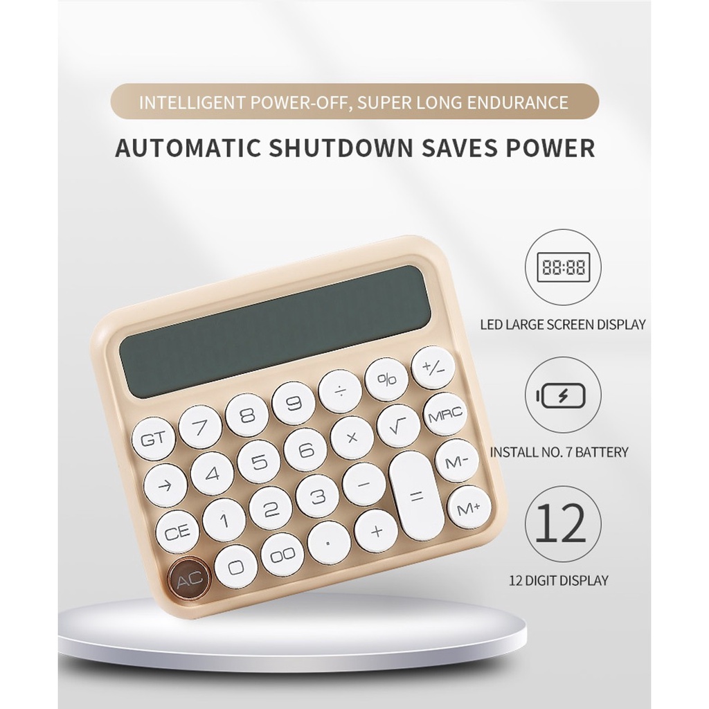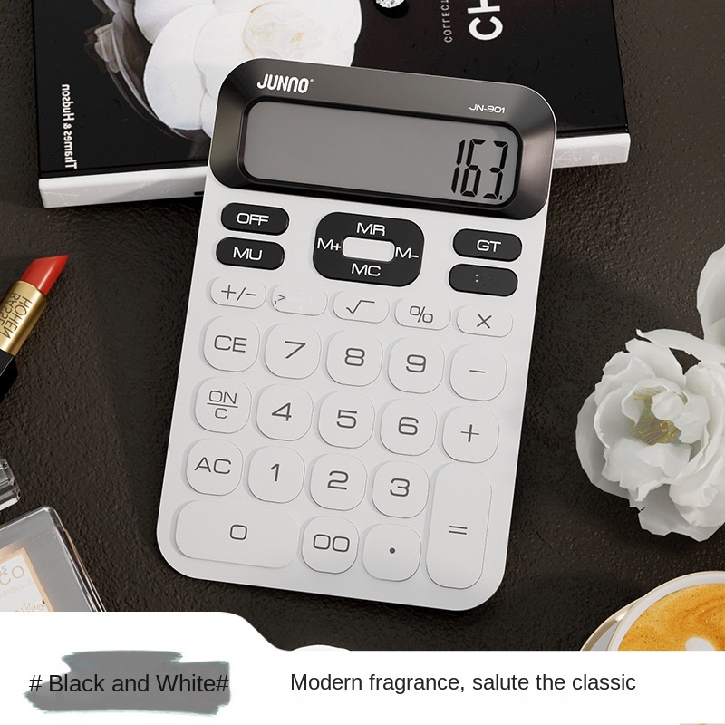 Stylish Silent Electronic Mechanical Calculator 12 Digit Large Big Size Kalkulator White Cute Junno Calculate Battery