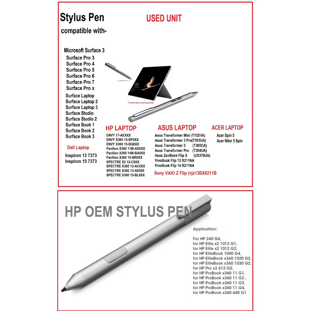 Stylus Touch Pen compatible with Surface Pro 3 /Pro4 /Pro5 /Pro6 /Pro 7/Pro X/Dell Laptop/Acer Laptop/HP Laptop/Asus