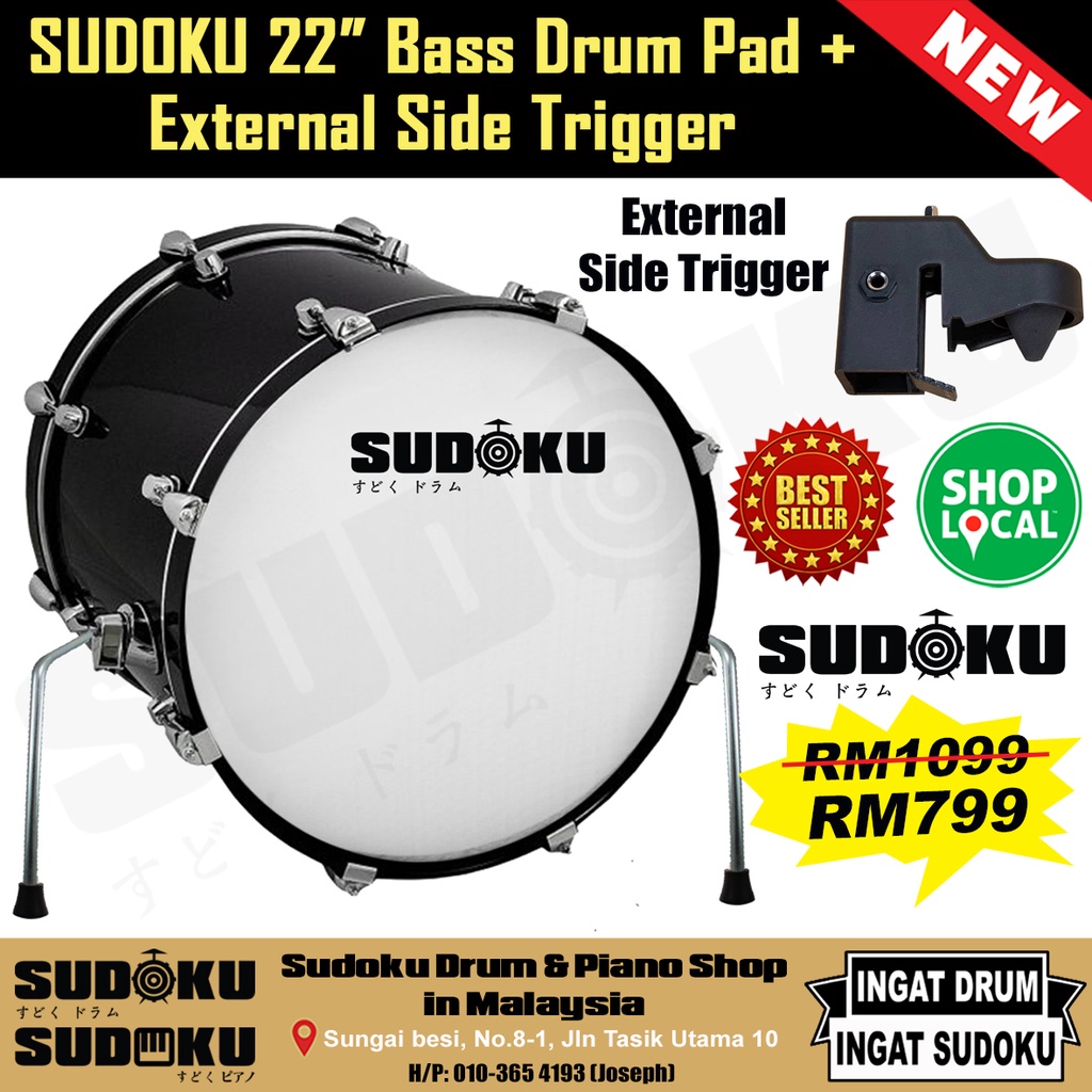Sudoku Electronic Electric Digital Bass Drum Pad Size 10" 12" 18" 20" 22" (support Roland,Yamaha,Alesis, Behringer)