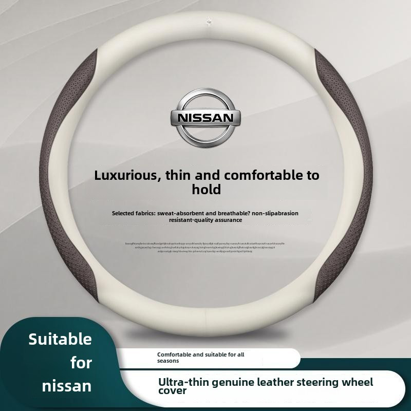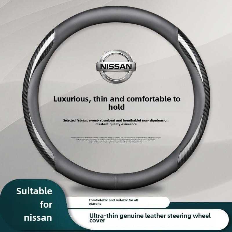 Suitable for Nissan steering wheel cover Almera, Xtrail, Sunny, Navara, Teana, Kicks, Livina, Serena leather car handle gloves, suede car steering wheel cover, carbon fiber steering wheel, car interior accessories