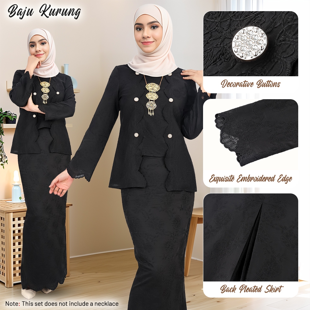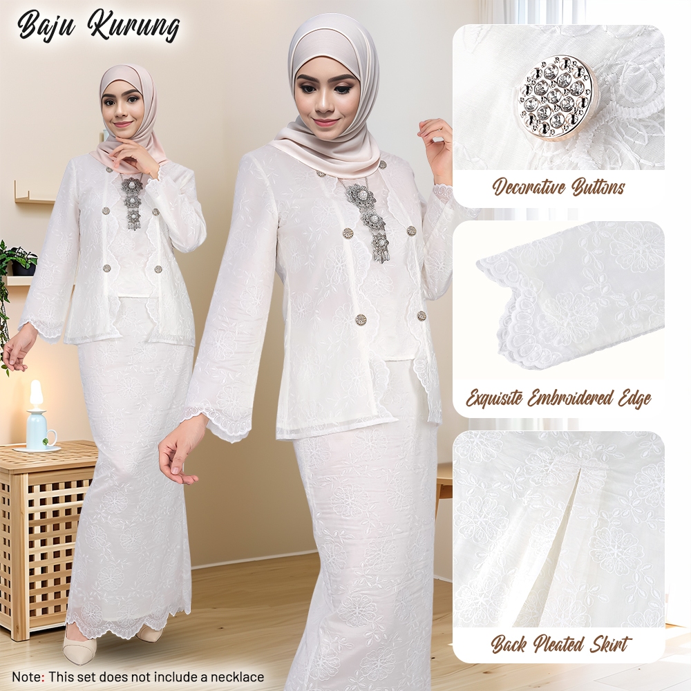 Sulam Baju Kebaya Moden Cotton Baju Kurung Putih/Kitam Pleated Kurung Breastfeeding Friendly Bridesmaid Kurung Raya 2026